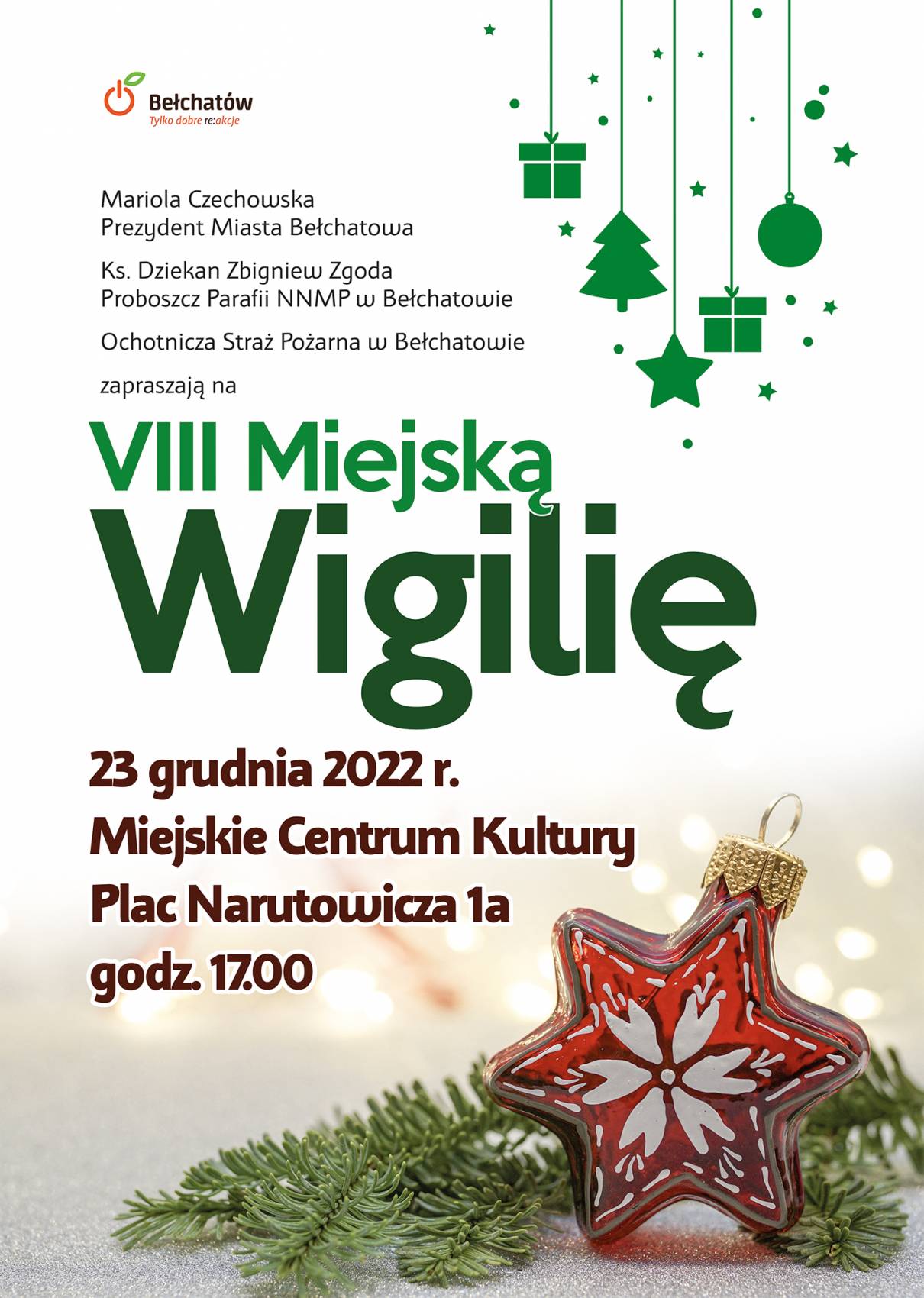 – Serdecznie zapraszam do spotkania w gronie sąsiadów i znajomych, podzielenia się opłatkiem, złożenia sobie życzeń, a także skosztowania wigilijnych potraw, których na naszym miejskim stole nie zabraknie – mówi Mariola Czechowska, prezydent Bełchatowa.