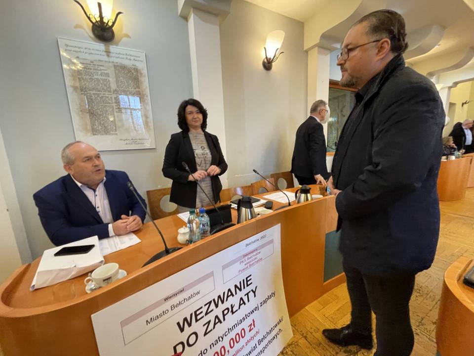 - Dziś personalnie obciążam starostę Dorotę Pędziwiatr za to, że ignoruje sytuację, w której PKS w Bełchatowie fikcyjnie, jeszcze raz podkreślam fikcyjnie przeniósł siedzibę do przedszkola w Niedyszynie. Liczę, że PKS Bełchatów znowu wróci ze swoją siedzibą do miasta i kwota blisko 200 tysięcy podatku rocznie znów zasili budżet miasta - mówił na sali herbowej Marcin Rzepecki, miejski radny.