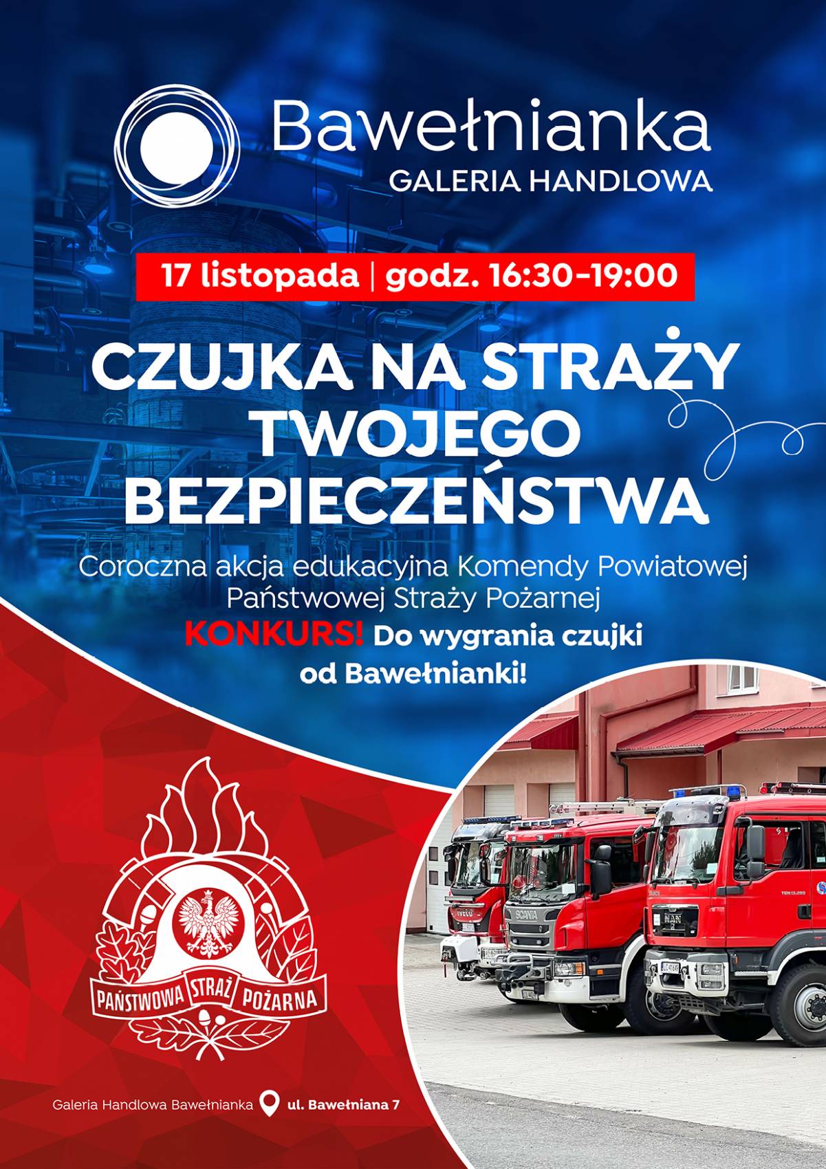 Już dziś strażacy bełchatowskiej Państwowej Straży Pożarnej zapraszają mieszkańców do czynnego udziału w akcji "Czujka na straży twojego bezpieczeństwa". W galerii "Bawełnianka" przez całe piątkowe popołudnie do dyspozycji bełchatowian będą między innymi strażacy i kominiarz. Wszystko w po to, by propagować wiedzę na temat bezpieczeństwa w naszych domach.