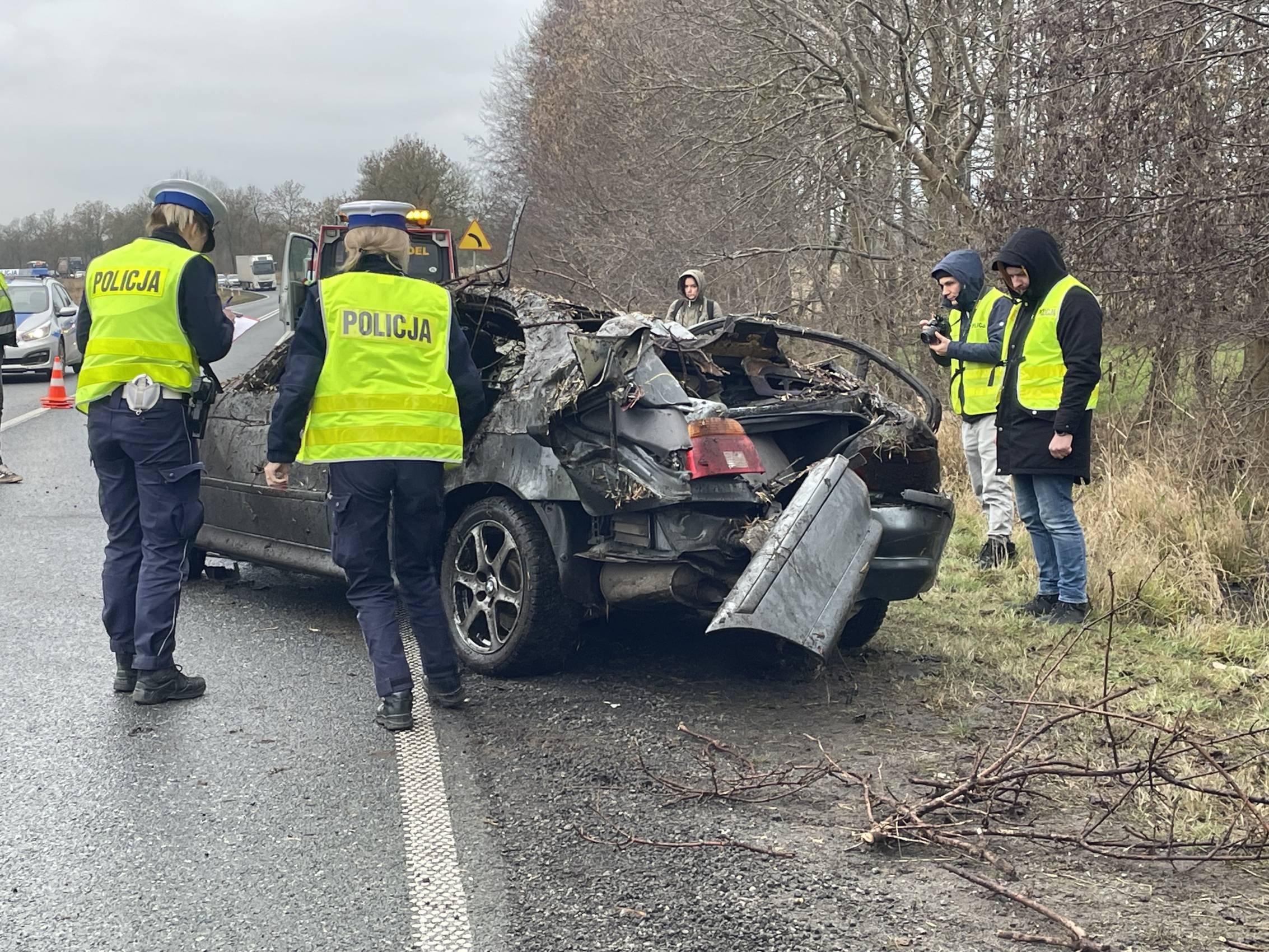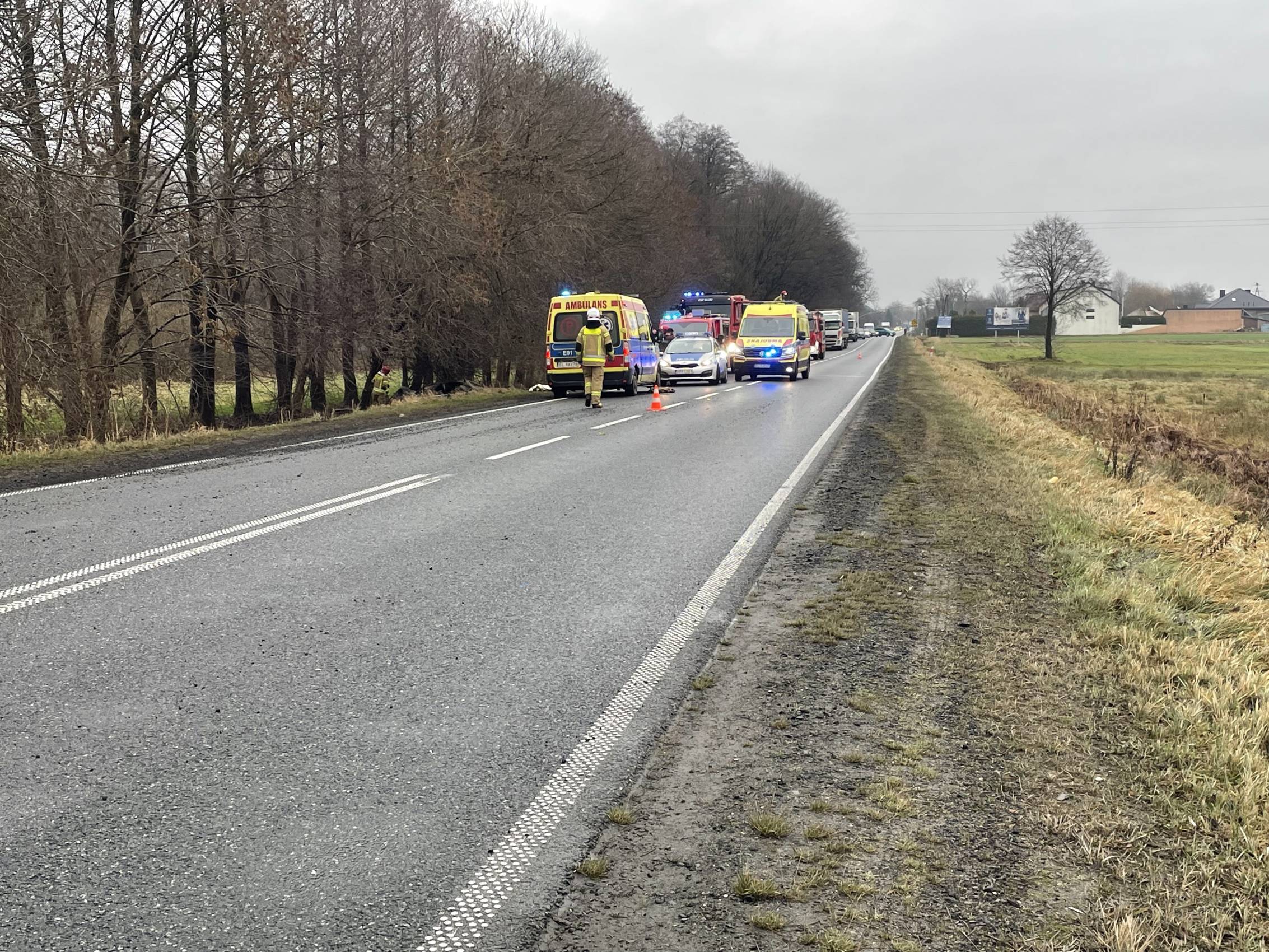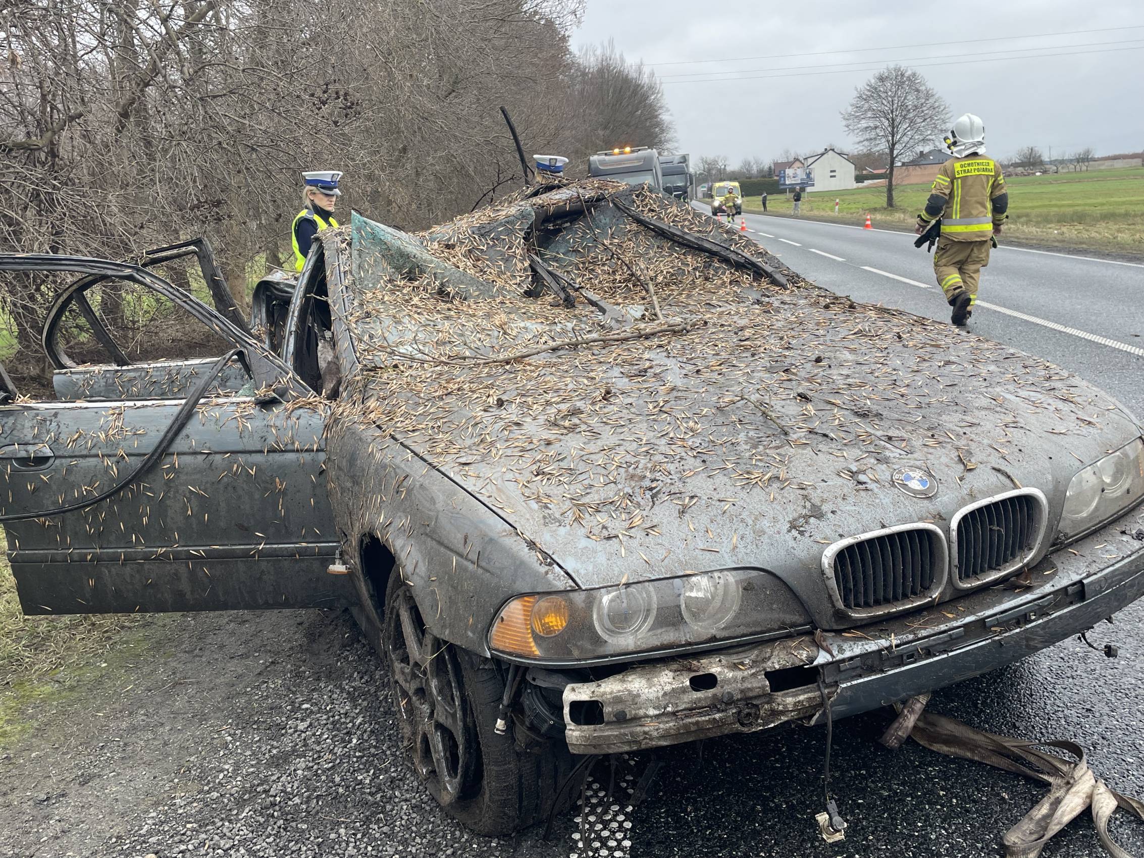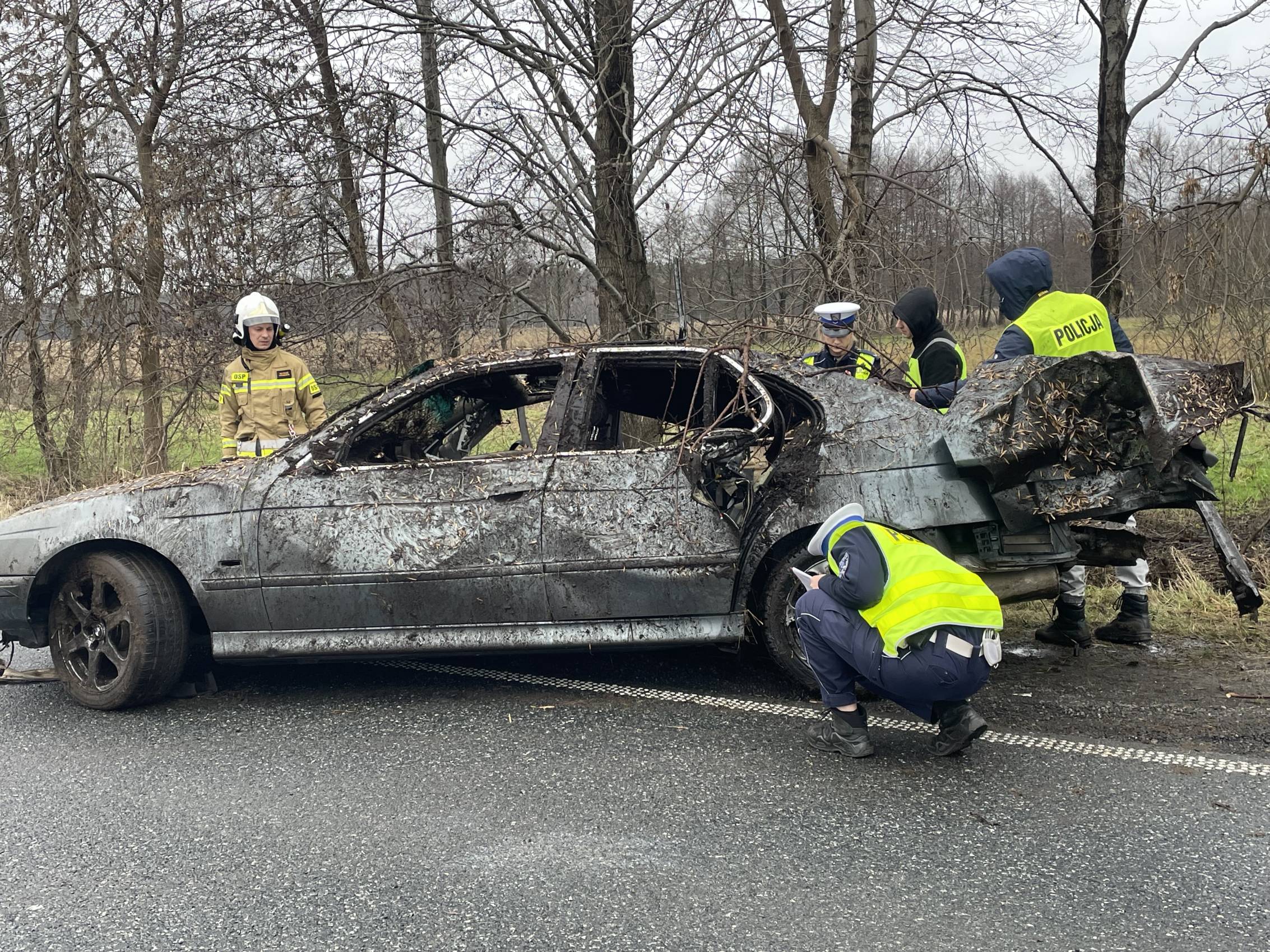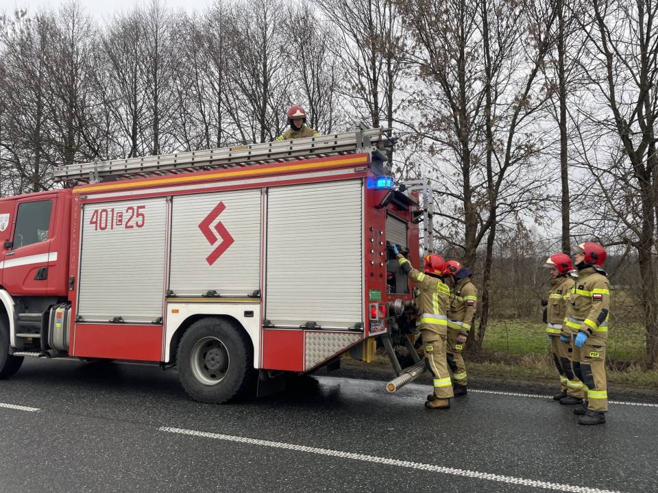 Na miejscu pracowali także funkcjonariusze policji, którzy prowadzili czynności mające na celu dokładne ustalenie przyczyn i okoliczności wypadku.