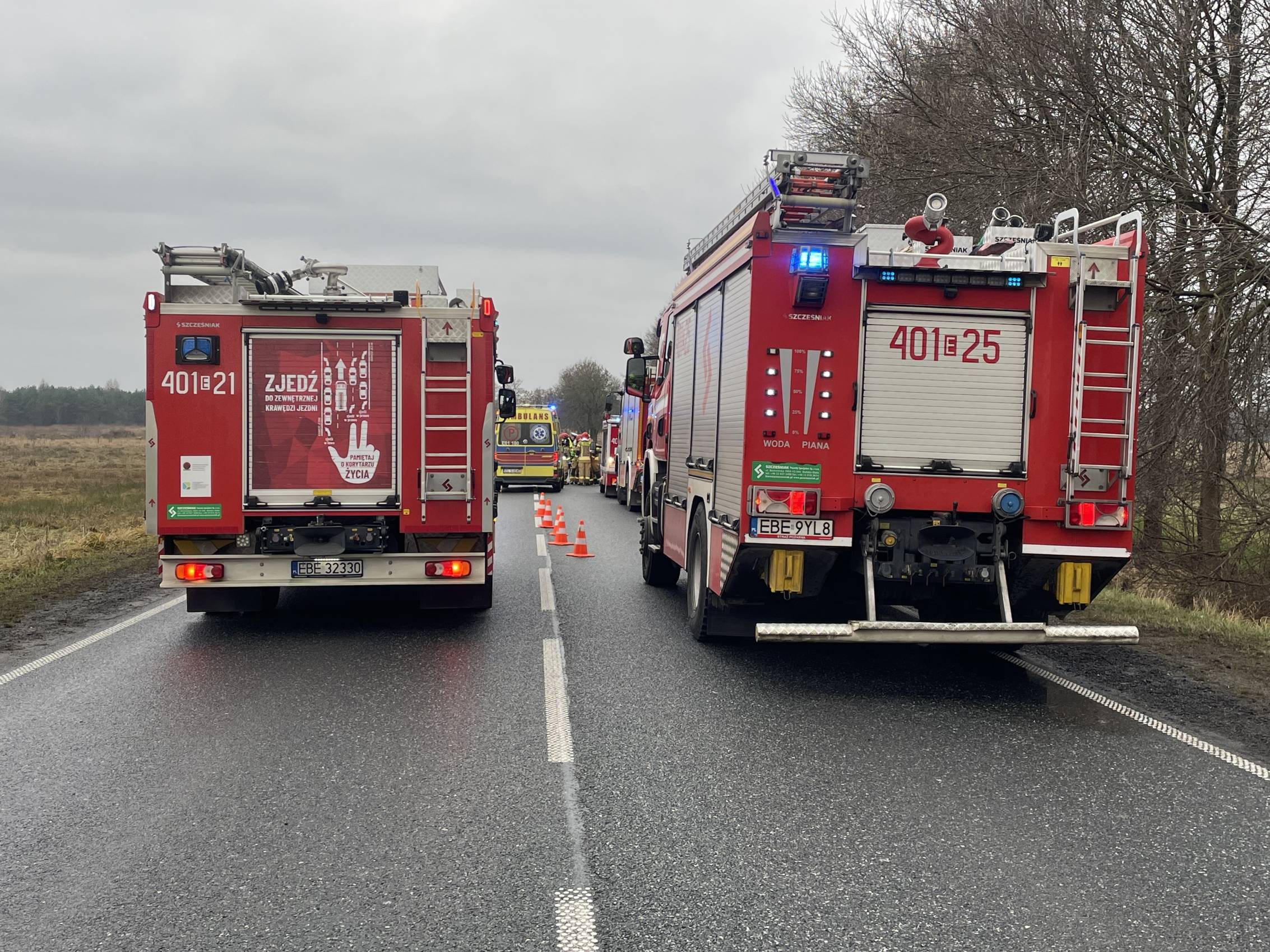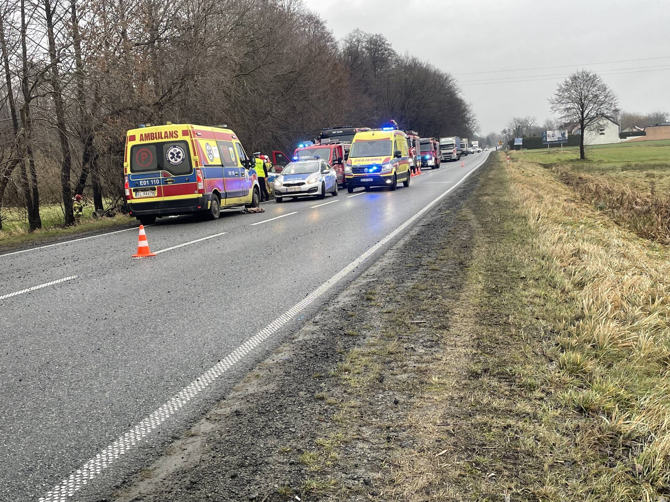 Zgłoszenie o wypadku wpłynęło do stanowiska kierowania Państwowej Straży Pożarnej w Bełchatowie o godzinie 9:24. Na miejsce zadysponowano dwa zastępy z JRG PSP Bełchatów oraz trzy zastępy Ochotniczych Straży Pożarnych – dwa z OSP Kluki oraz jeden z OSP Szczerców. Do działań skierowano również trzy zespoły ratownictwa medycznego oraz policję.