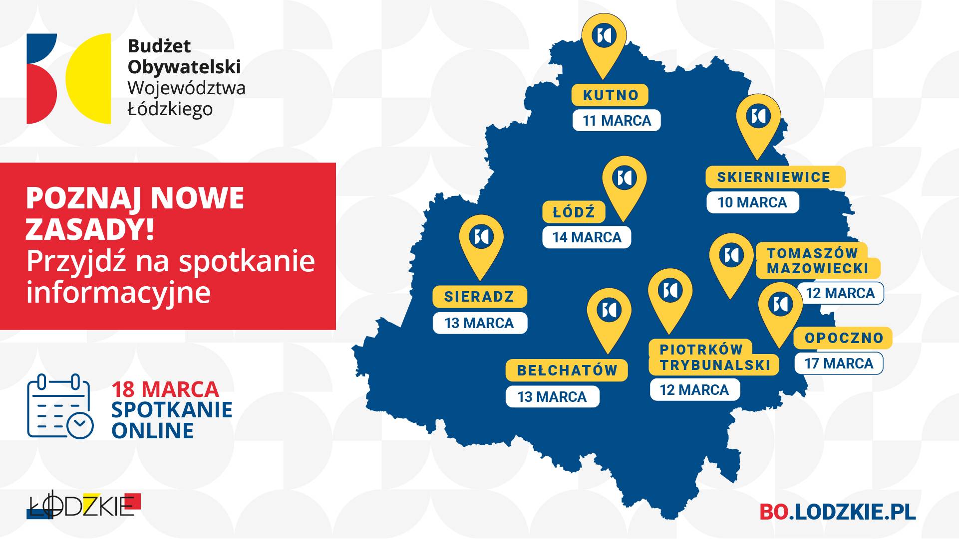 Spotkania informacyjne – gdzie i kiedy?Eksperci Urzędu Marszałkowskiego podróżują po regionie, by przybliżyć mieszkańcom zasady nowej edycji BOWŁ. Za nami już pierwsze spotkania w Radomsku, Łowiczu, Zgierzu, Pabianicach i Wieluniu. Kolejne odbędą się w przyszłym tygodniu: