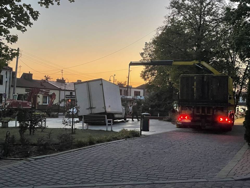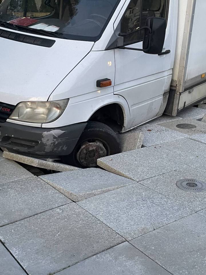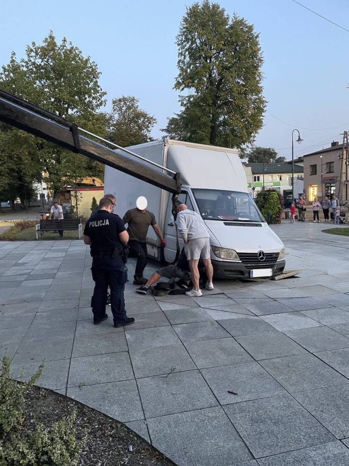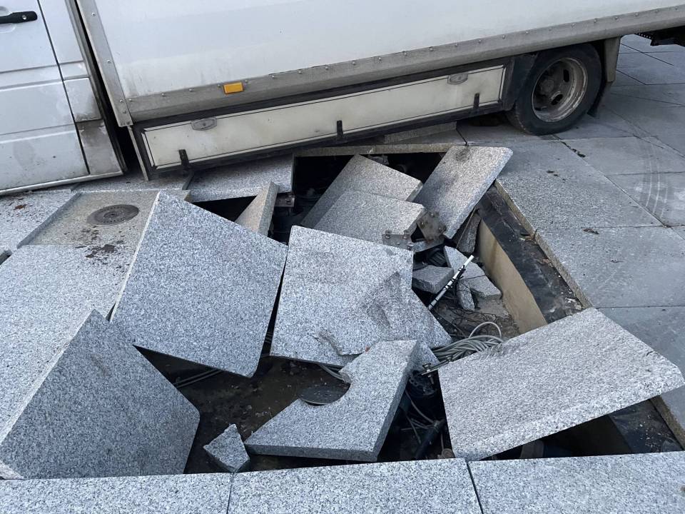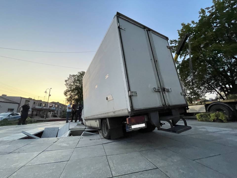 Do zdarzenia doszło wczesnym wieczorem. Sporych rozmiarów dostawczak totalnie utknął w wyrwie jaka powstała po zapadnięciu się granitowych płyt. Niezbędnym okazała się pomoc cięższego holownika, który przez kilkanaście minut wyciągał pojazd z zapadnietej fontanny. Okazało się, że sprawcą zdarzenia był kierowca z powiatu radomszczańskiego.