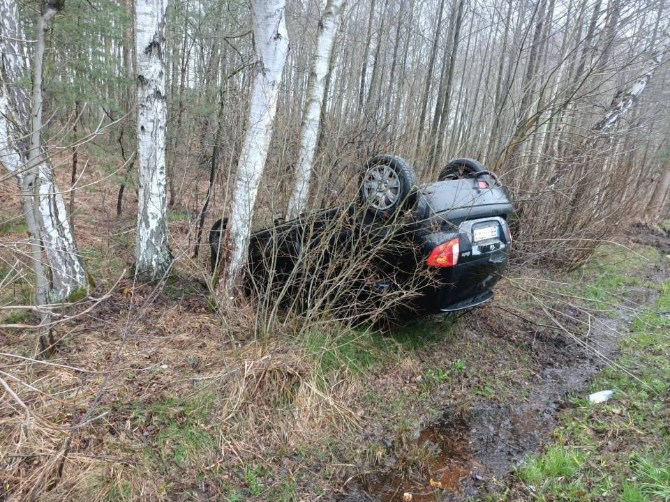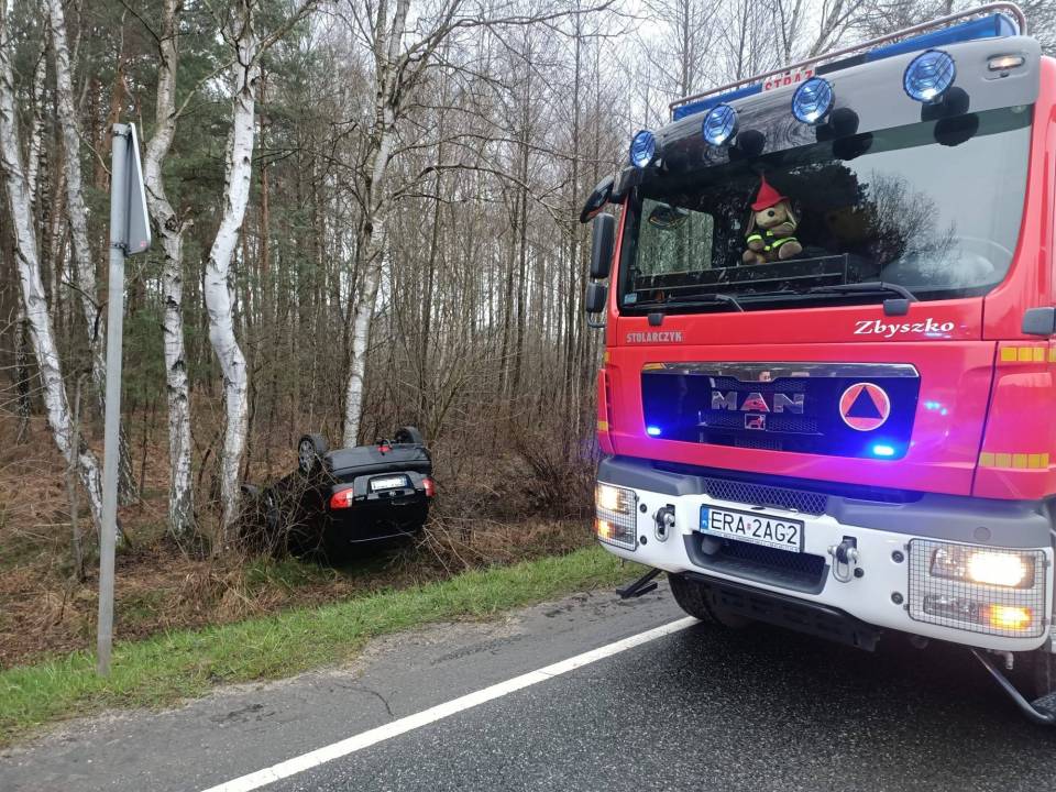 Strażacy wezwanie do akcji otrzymali około godzinie 7.30. Po dojeździe na miejsce zdarzenia kierująca będąca jedyną podróżującą była już poza pojazdem. Z przewróconego na dach hyundaia wyszła o własnych siłach. Młoda kobieta szczęśliwie nie odniosła obrażeń wymagających hospitalizacji i odmówiła przewiezienia do szpitala. A mówić o szczęściu z pewnością można patrząc na to w jaki sposób samochód dosłownie "wpasował" się między drzewa...