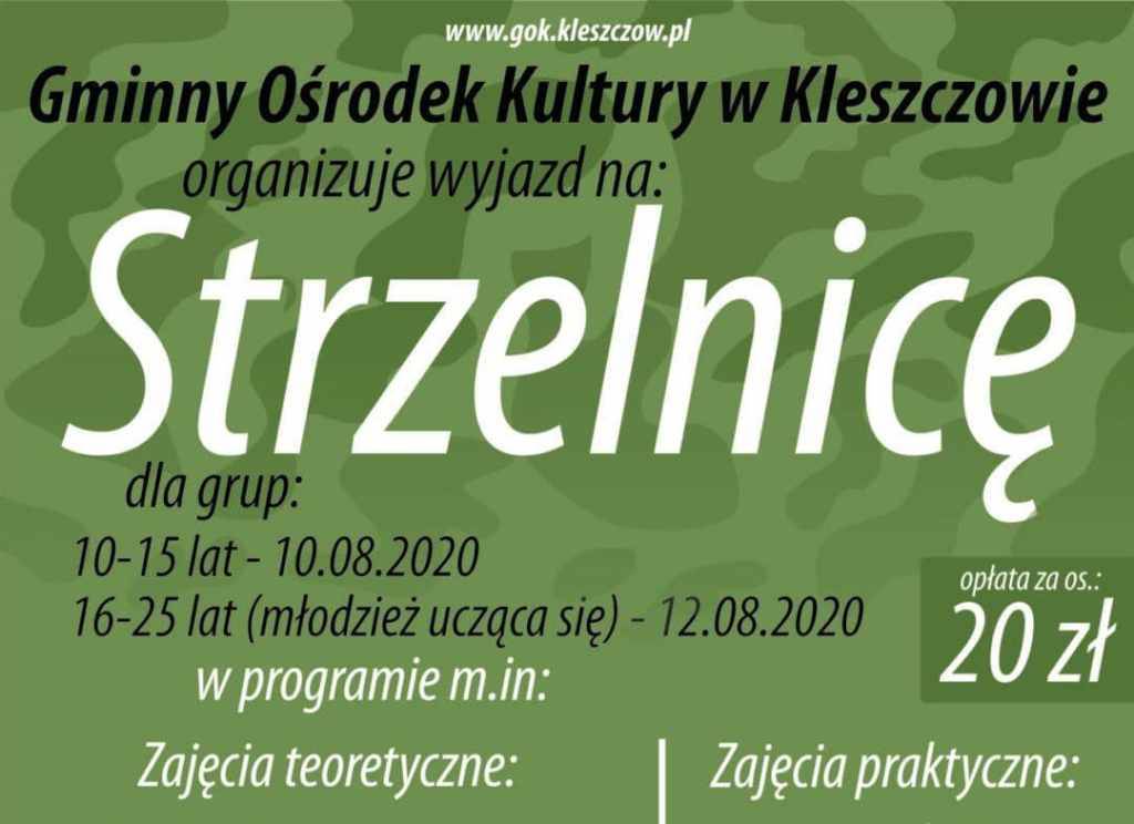 GOK w Kleszczowie w ramach projektów zajęć, organizowanych w wakacje dla dzieci i młodzieży, zorganizuje w sierpniu wyjazdy na strzelnicę.