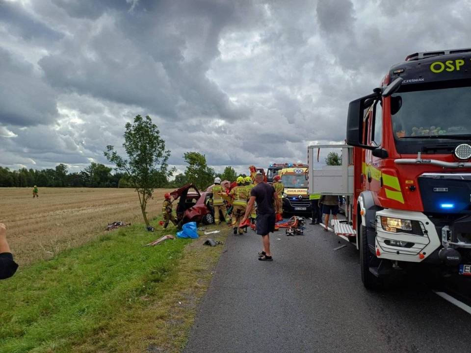 Siła zderzenia była na tyle duża, że ucierpieli zarówno kierowca citroena, jak i jego pasażerka – 70-letnia kobieta. Oboje zostali przewiezieni do szpitala, a kobietę zabrał na pokładzie śmigłowiec Lotniczego Pogotowia Ratunkowego.