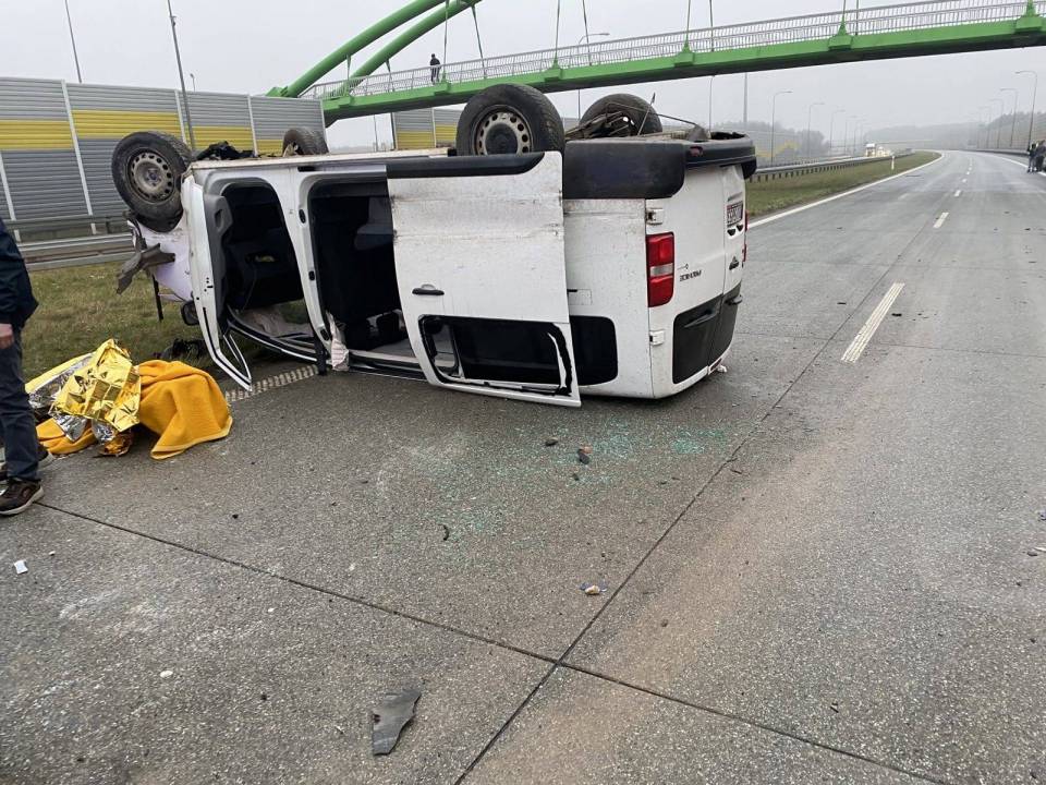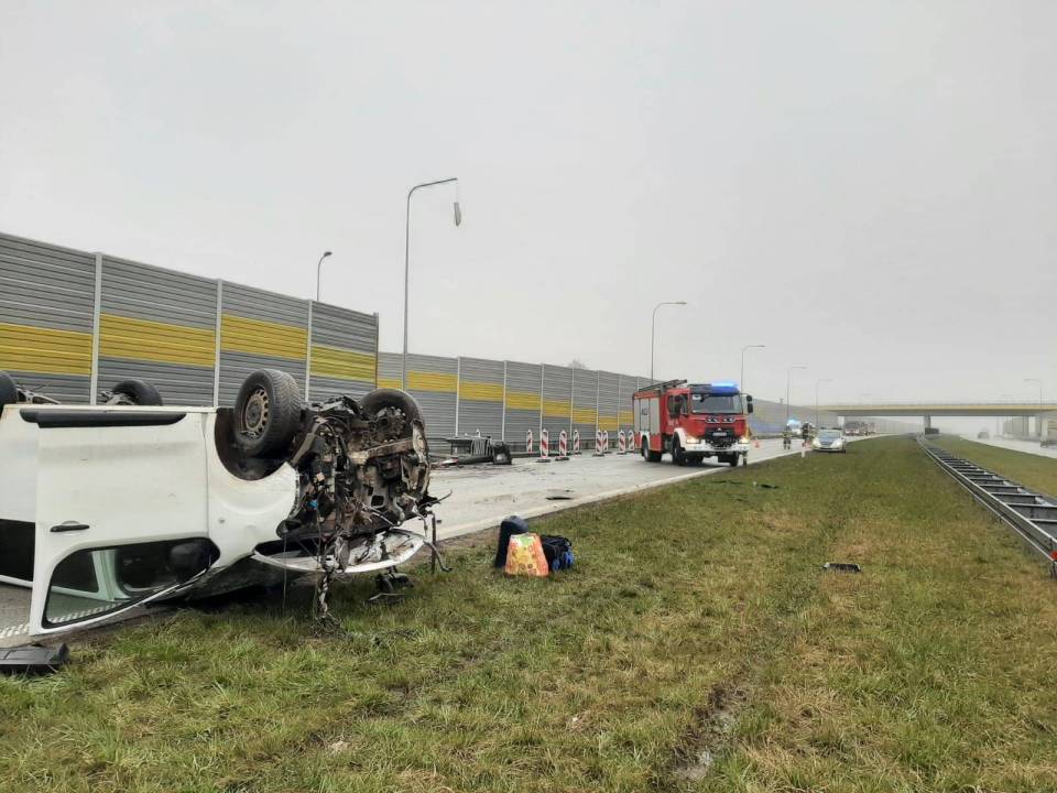 Piątkowy poranek zaczął się na drogach powiatu łaskiego wyjątkowo niefartownie. O godzinie 6.08 rano służby zostały wezwane na 196 kilometr trasy na wysokości miejscowości Sięganów. 50-letni kierowca toyoty proace zasnął za kierownicą pojazdu w wyniku czego uderzył w bariery energochłonne. Siła uderzenia była na tyle duża, że "wybiła" pojazd w powietrze, samochód przelatując na pasami uderzył w toyotę corollę, ale na tym nie koniec...
