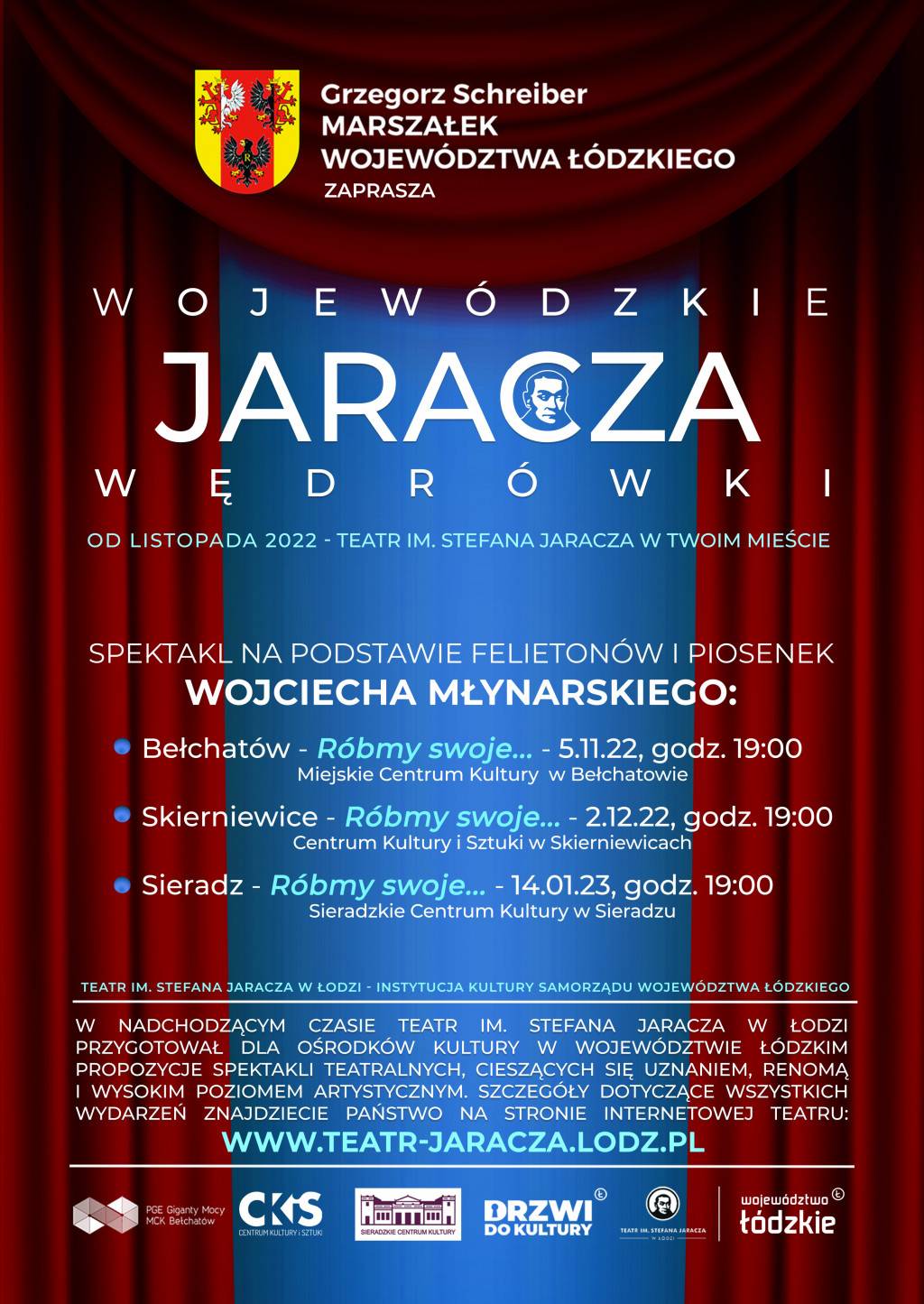 Wojewódzkie Jaracza Wędrówki to pilotażowy projekt Województwa Łódzkiego i Teatru im. Stefana Jaracza w Łodzi, przygotowany dla ośrodków kultury w naszym regionie. Od listopada gości w miastach naszego województwa.