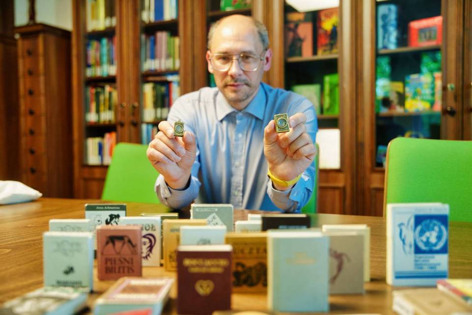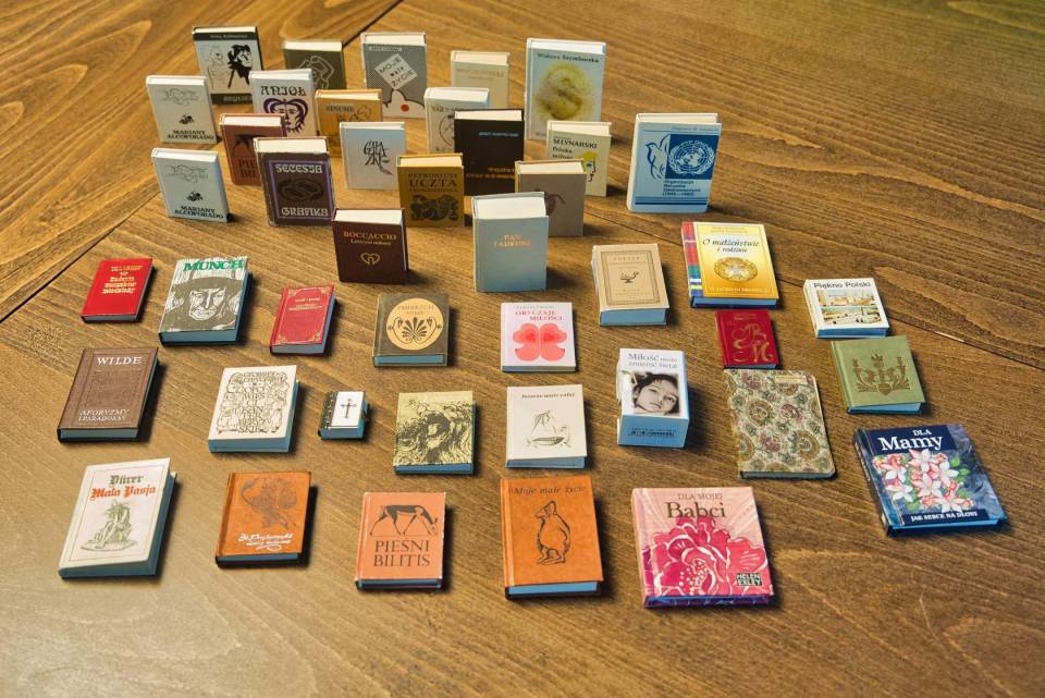 Puszkin i Mickiewicz to największe skarby w kolekcji miniaturowej biblioteki. Liczy ona 386 pozycji. To książki, których wymiary nie przekraczają 10 na 10 centymetrów. Kolekcja zawiera miniatury różnych gatunków literackich i dziedzin. Jest poezja, literatura obyczajowa, literatura faktu. Są książki dotyczące sztuki, sportu, architektury, techniki. Przykłady? „Pasja" Albrechta Dürera, która zawiera 37 pięknych, czarno-białych drzeworytów. Oczywiście miniaturowych. Jest manifest komunistyczny Marksa i Engelsa. Jak przystało na tego typu wydawnictwo - w czerwonej oprawie. Jest poezja Wisławy Szymborskiej, są „Kwiaty polskie" Tuwima, czy książeczki okolicznościowe, wydane na przykład z okazji Dnia Babci albo Dnia Matki.