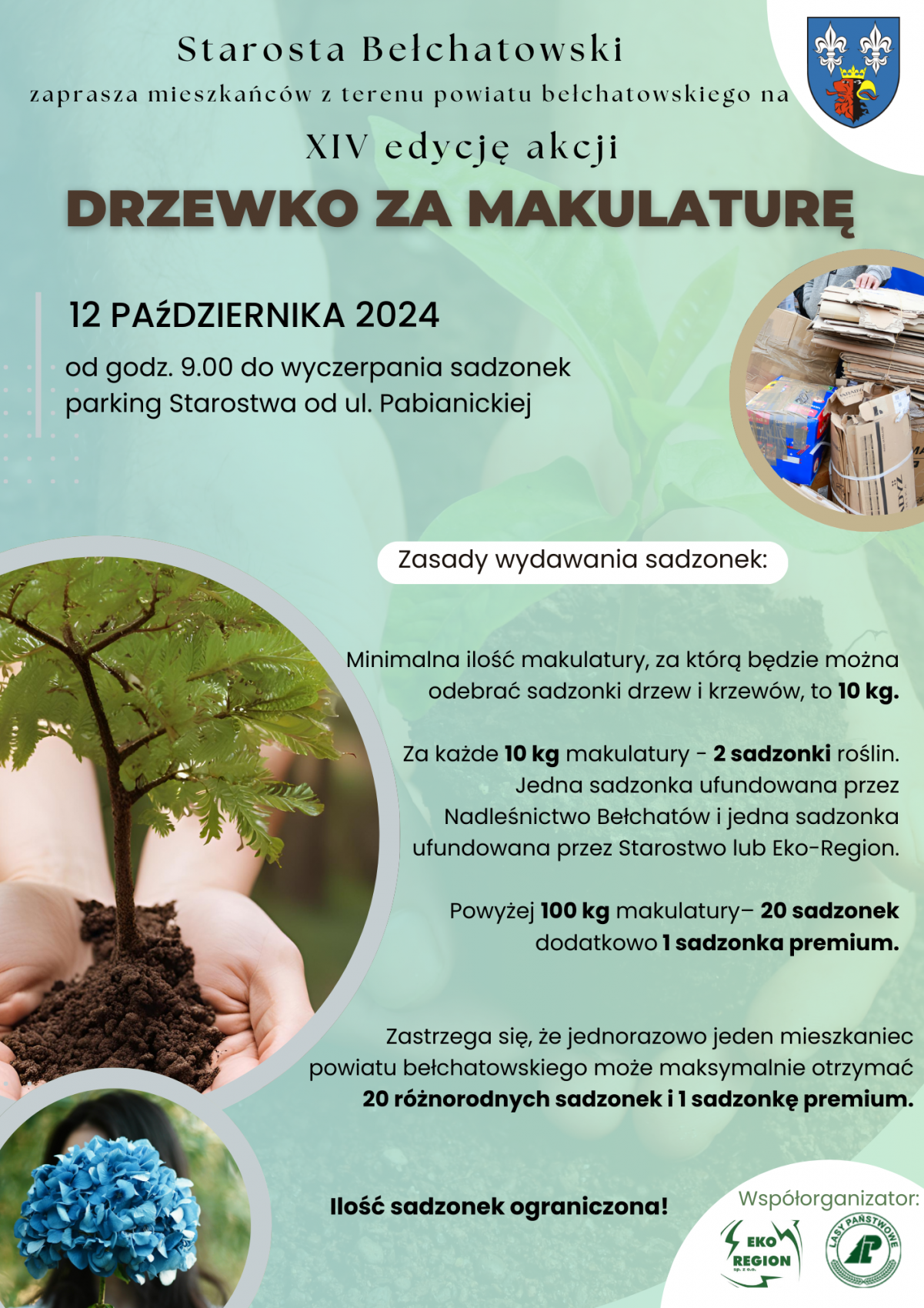 Bełchatowianie od lat kochają tę akcję i od lat wpisała się ona w kalendarz wydarzeń, stając się sztandarowym działaniem Powiatu Bełchatowskiego. Już niebawem XIV edycja "Drzewka za makulaturę". Tradycyjnie na mieszkańców będzie czekać kilka tysięcy sadzonek, które trafią w ręce za przekazaną makulaturę.