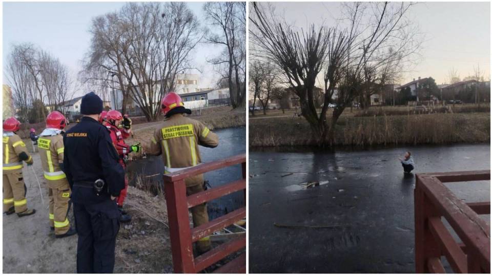Niebezpieczna zabawa na lodzie. Służby interweniowały nad miejskim oczkiem wodnym [Foto]