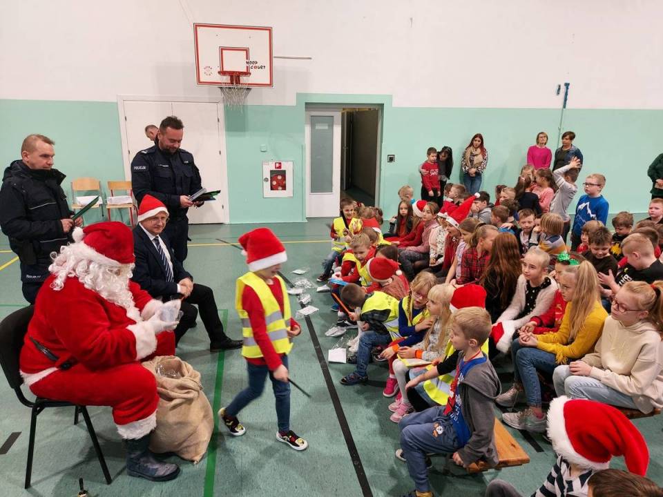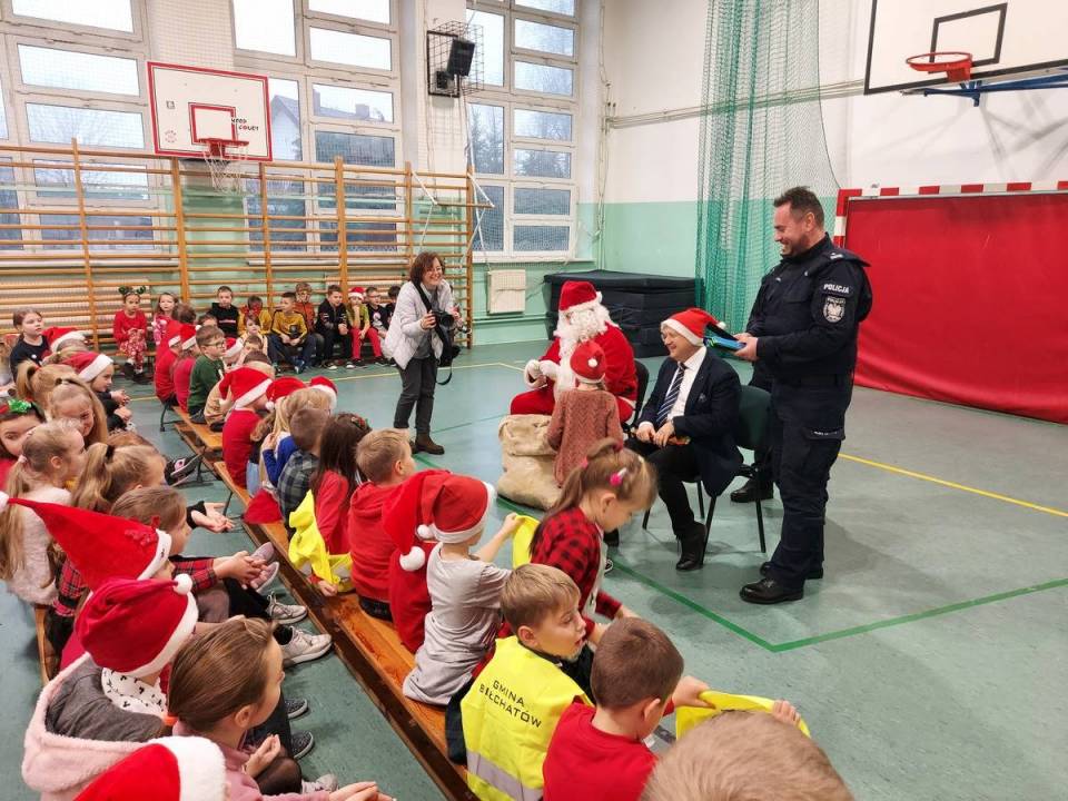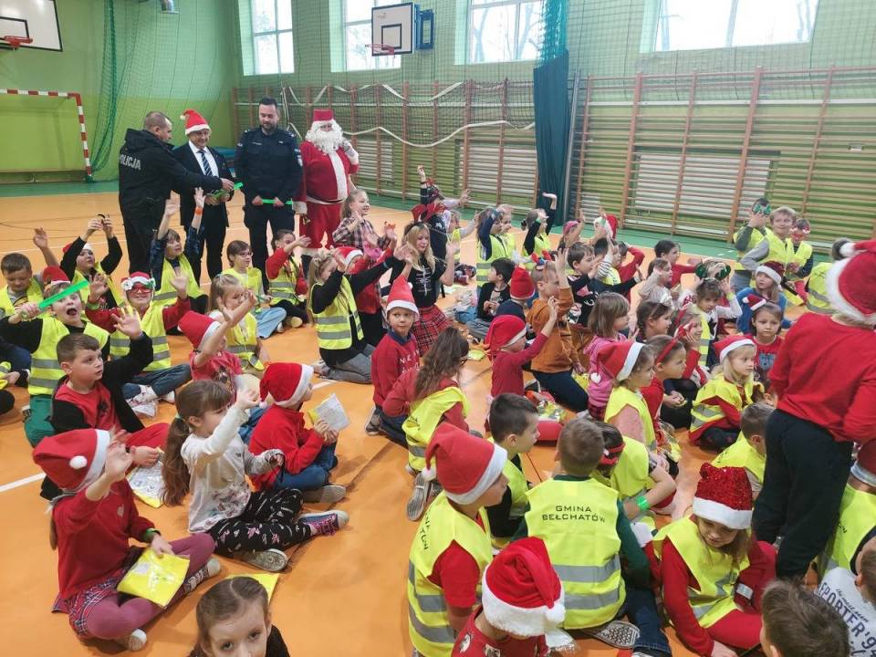 Mikołajki to czas niespodzianki. W tym roku bełchatowscy policjanci we współpracy z wójtem gminy Bełchatów wręczyli drobne upominki przedszkolakom i uczniom ze szkól w Domiechowicach i Dobrzelowie. To kamizelki i opaski odblaskowe. Ten niespodziewany prezent miał zachęcić dzieci do częstszego noszenia świecących elementów. Wszystko w trosce o ich bezpieczeństwo na drodze.