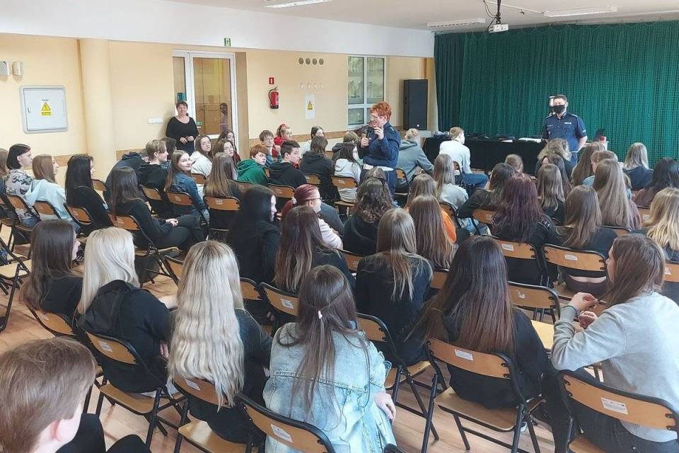 Uczniowie usłyszeli też m.in. o zagrożeniach i konsekwencjach jakie niesie ze sobą zażywanie narkotyków, ich posiadanie, udzielanie, handel zakazanymi środkami. Uczniowie z zainteresowaniem słuchali o przestępstwach narkotykowych i odpowiedzialności za związek z narkotykowym procederem.
