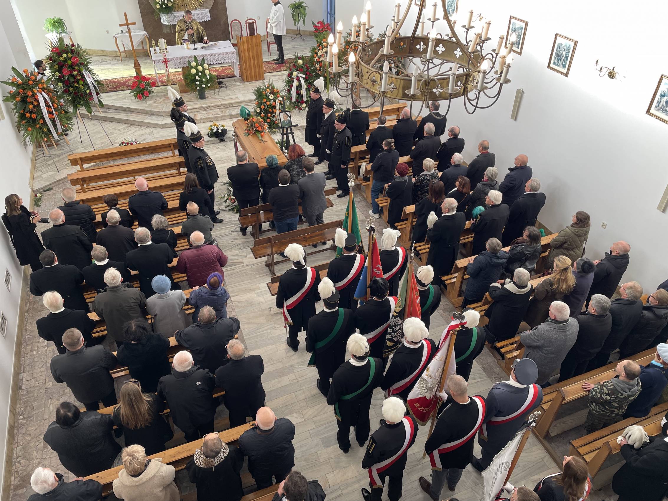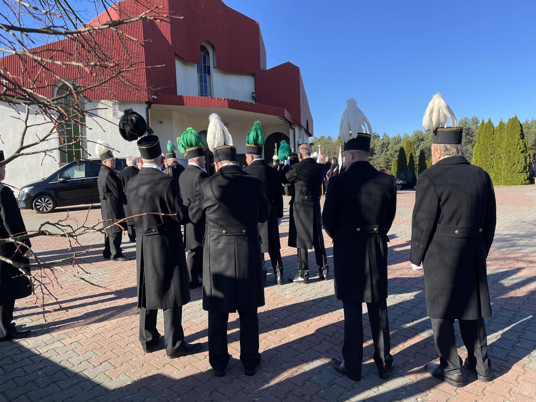 W ostatniej drodze towarzyszyła mu orkiestra górnicza, poczty sztandarowe i morze czarnych mundurów z zielonymi, białymi i czarnymi pióropuszami czako.