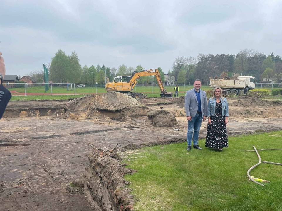 Dokładnie w miniony piątek, 6 maja na placu budowy, tuż przy Szkole Podstawowej w Wadlewie wbito pierwszą symboliczną łopatę i tak oto ruszyła długo wyczekiwana budowa. Mowa oczywiście o budynku sali gimnastycznej. Przy rozpoczęciu prac obecni byli wójt gminy Drużbice Tomasz Głowacki oraz dyrektor szkoły w Wadlewie Małgorzata Kruk.