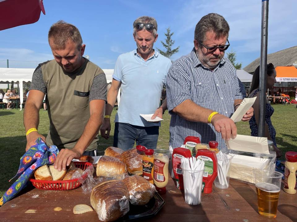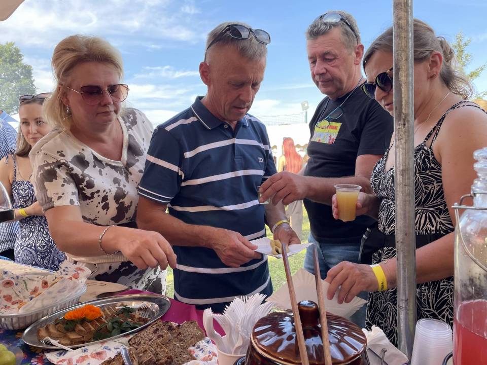 Jednym z najważniejszych elementów Dnia Sąsiada od samego początku są kulinaria. Stoły uginały się od domowych wypieków, swojskich wędlin, chrupiącego chleba ze smalcem i kiszonym ogórkiem. Nie zabrakło też tradycyjnej, długo wyczekiwanej grochówki z kuchni polowej, serwowanej prosto z ogromnego garnka – dania, które dla wielu stało się symbolem tego wydarzenia.