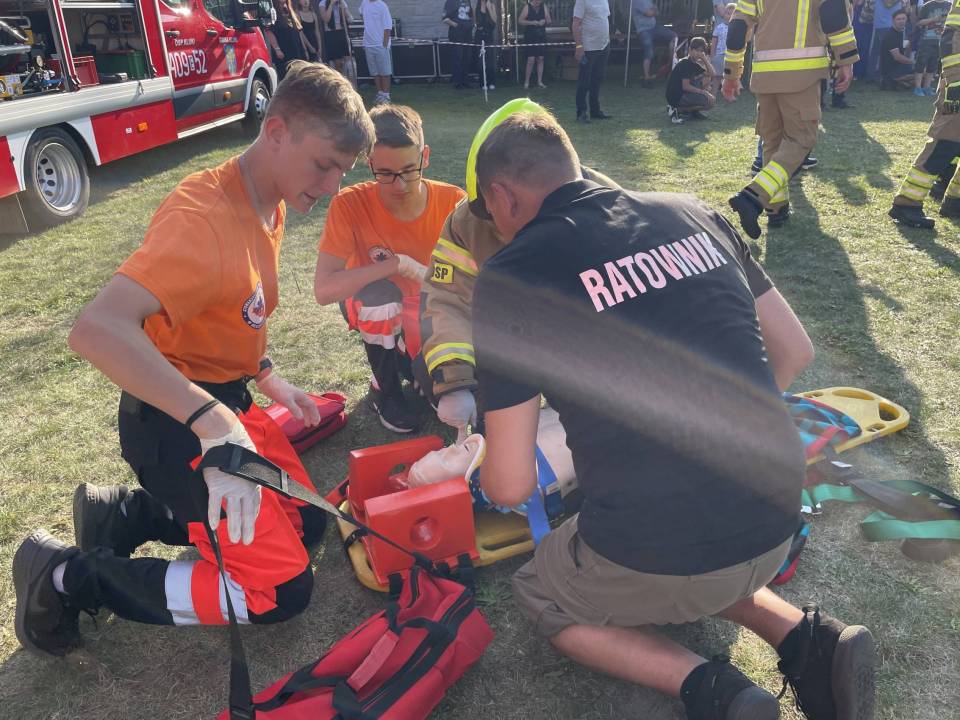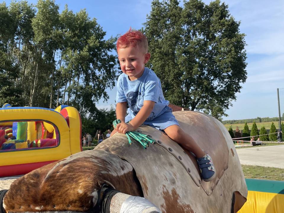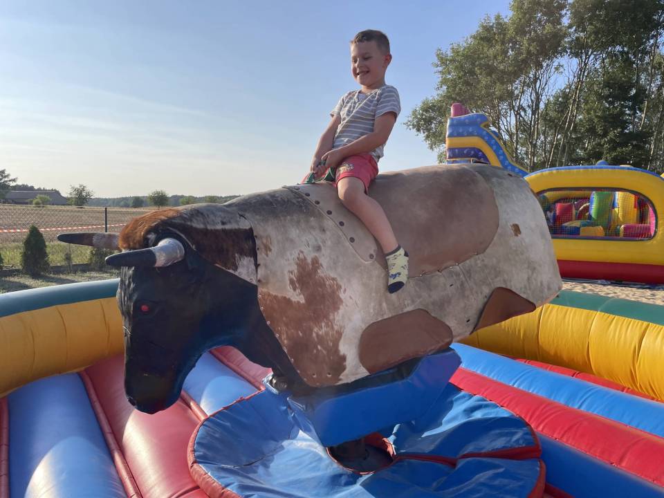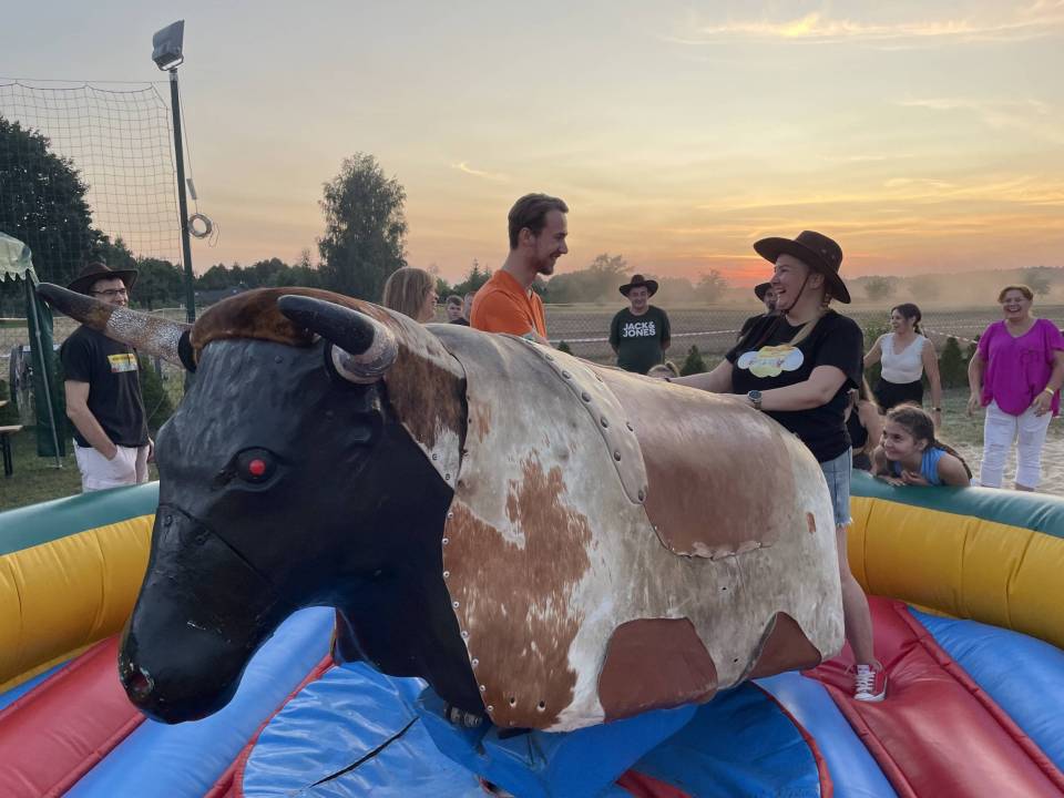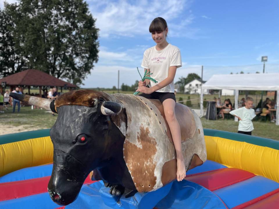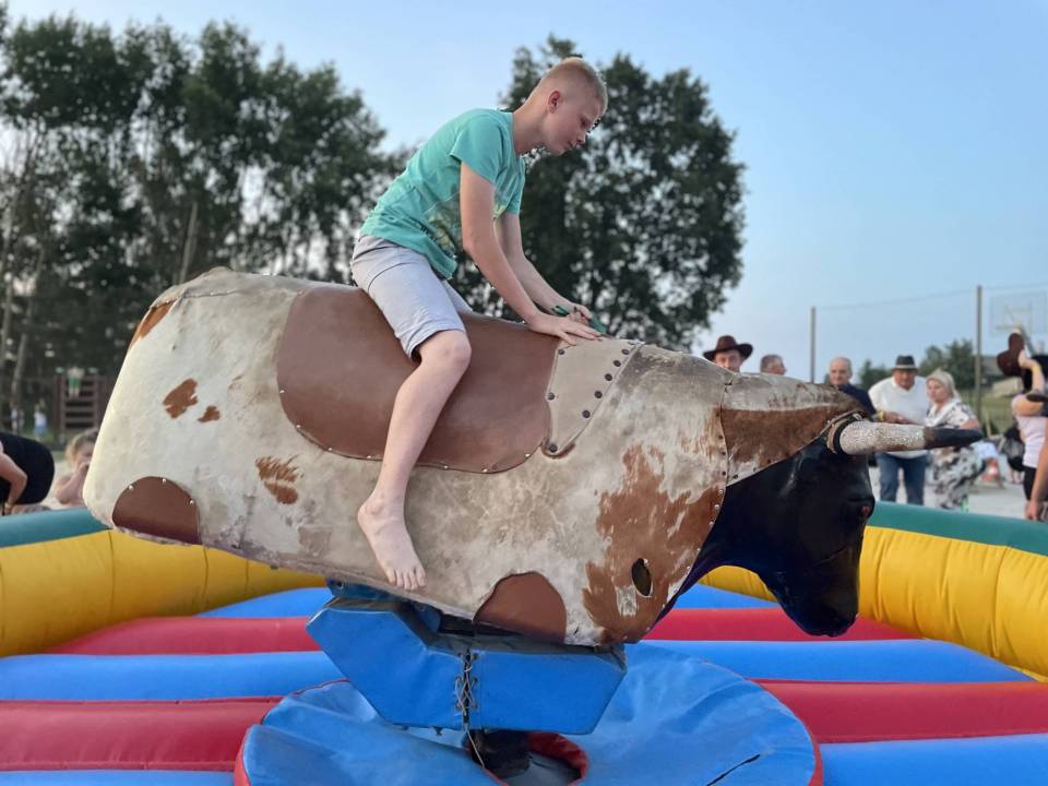 Ratownicy, strażacy i... bykDla spragnionych emocji nie zabrakło również atrakcji z przymrużeniem oka – konkurs jazdy na byku, rzut snopkiem, a także niecodzienna okazja do przejażdżki monster truckiem, która wzbudzała szczególne emocje wśród najmłodszych.