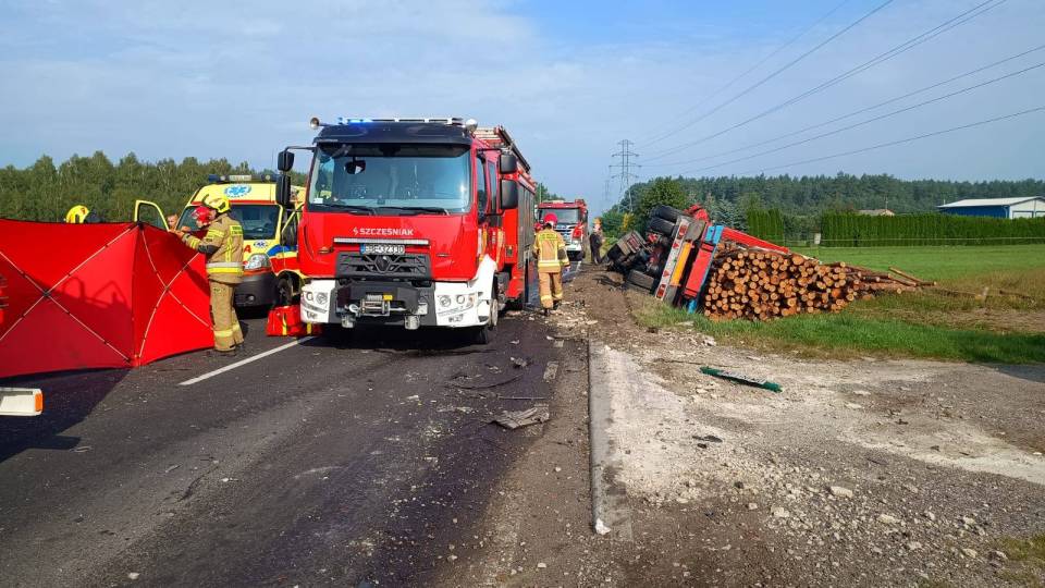 Tragedia w gminie Kamieńsk, na DW 484. W Gałkowicach Nowych doszło do zderzenia osobowego Forda z ciężarówką przewożącą ładunek drewna. W wyniku zdarzenia śmierć na miejscu poniósł 47 -letni mieszkaniec powiatu bełchatowskiego. W akcji jest ogrom służb - jak przekazuje brygadier Jędrzej Pawlak na miejsce zadysponowano dziewięć zastępów straży pożarnej, swoje czynności wykonuje także policja.