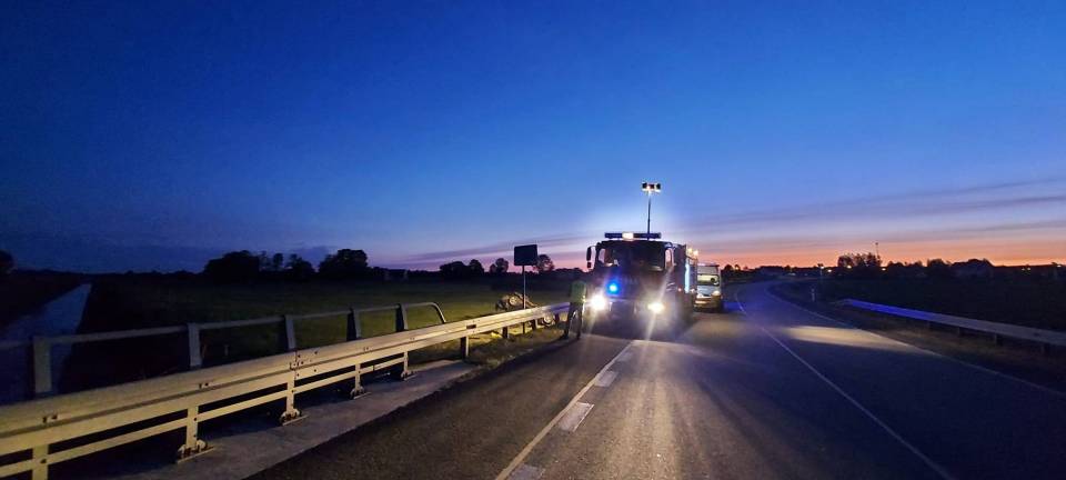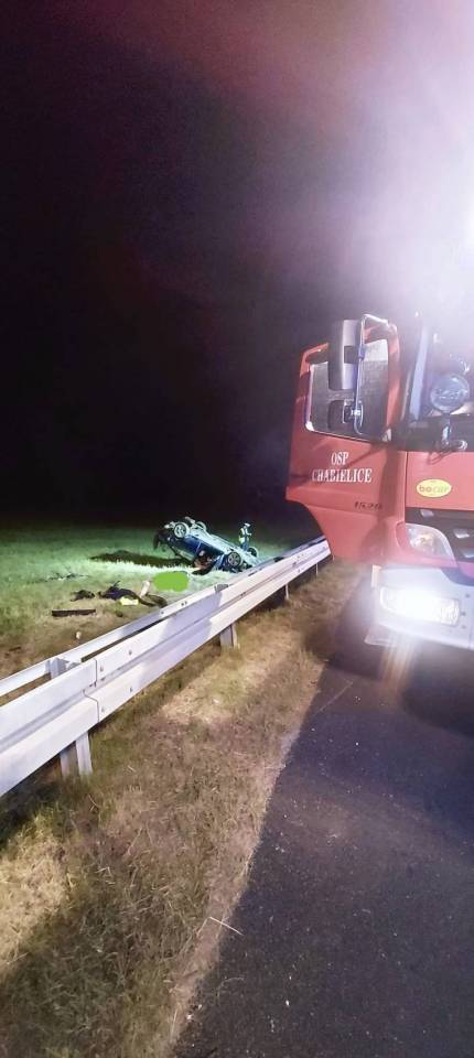 Do zdarzenia doszło tuż przed godziną 2.00 w nocy z poniedziałku na wtorek. Na 39 kilometrze DW 483, na łuku trasy na wysokości Chabielic, auto osobowe z jeszcze nieustalonych powodów wypadło z drogi, przeleciało przez tamtejszy ciek wodny. Samochód, który jechał w kierunku Częstochowy uderzył w barierki i finalnie dachował.