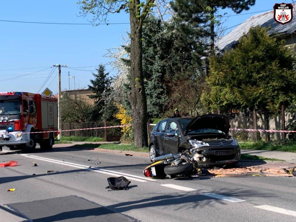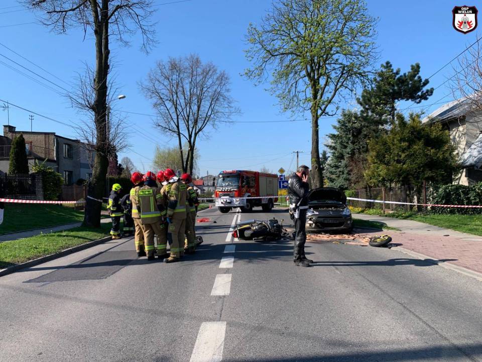 Do wypadku doszło 22 kwietnia o godzinie 8.30 na ulicy 3-maja w Wieluniu. Ze wstępnych ustaleń wynika, że 60-letni kierujący osobowym citroenem, podczas wykonywania manewru skrętu w lewo nie udzielił pierwszeństwa przejazdu doprowadzając do zderzenia z nadjeżdżającym z przeciwległego kierunku motocyklem marki Honda.