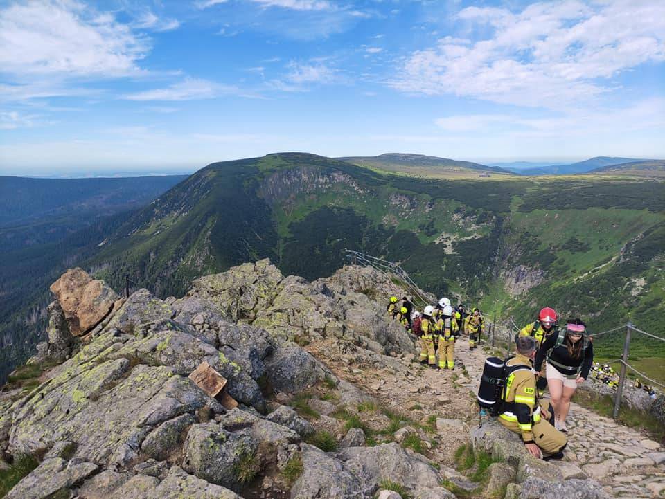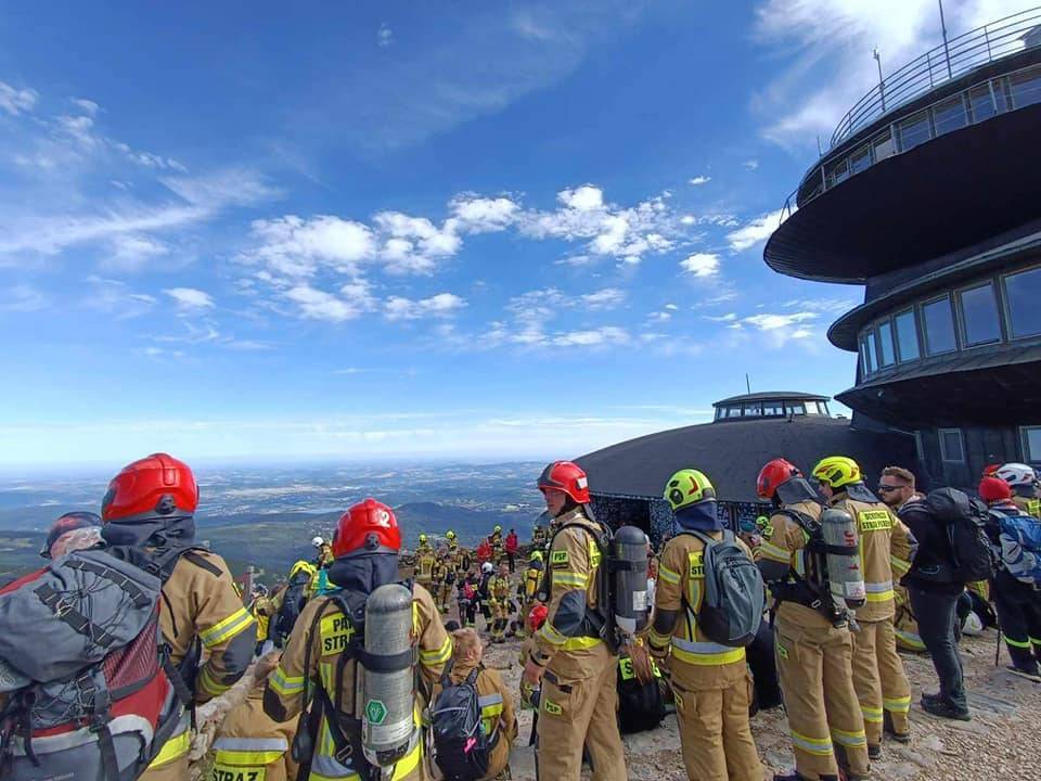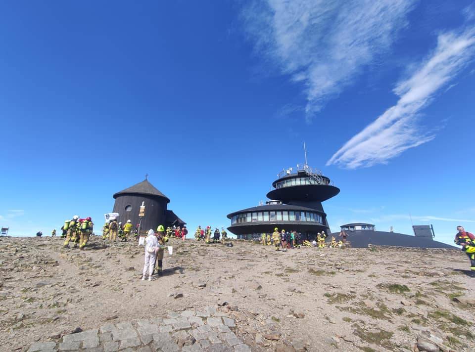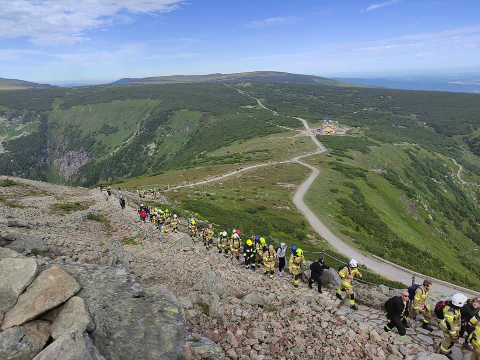 Taki widok na karkonoskim szczycie to rzadkość - na Śnieżce w minioną sobotę, 6 lipca odliczyły się setki strażaków z jednostek OSP i PSP z całej Polski! Tym samym, idea dawstwa szpiku dotarła na najwyższe szczyt Karkonoszy ! Co warte podkreślenia i szczególnego uznania wszyscy, jak jeden mąż pokonali bardzo wymagającą trasę na szczyt w pełnym, bojowym umundurowaniu ważącym od 15 do 20 kg!