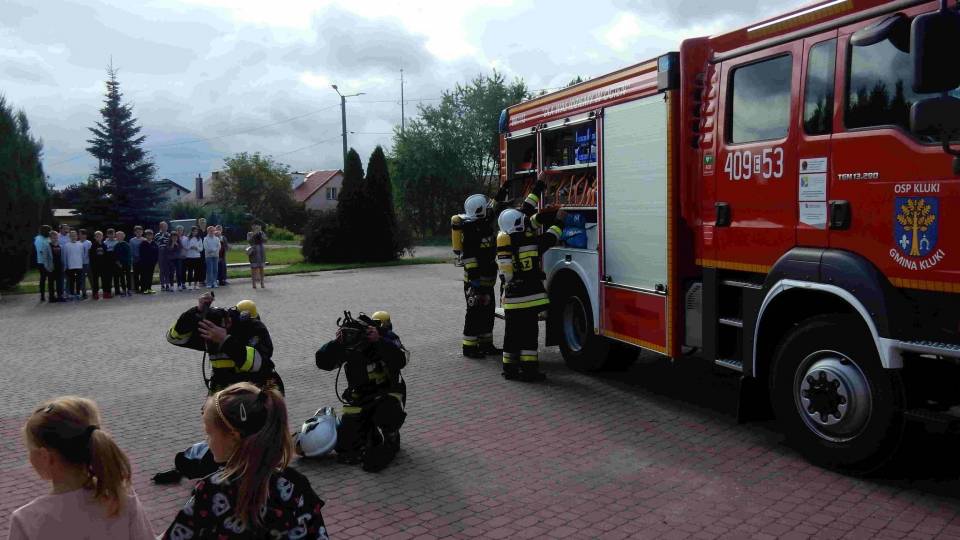 W piątek, 16 września w godzinach porannych strażacy z Ochotniczej Straży Pożarnej w Klukach wspierani przez druhów z OSP w Parznie oraz z OSP w Kaszewicach przeprowadzili operację ewakuacji wszystkich uczniów, nauczycieli i pracowników z płonącego Zespołu Szkół Podstawowych w Klukach. Pożar był fikcyjny, ale ewakuacja jak najbardziej prawdziwa.