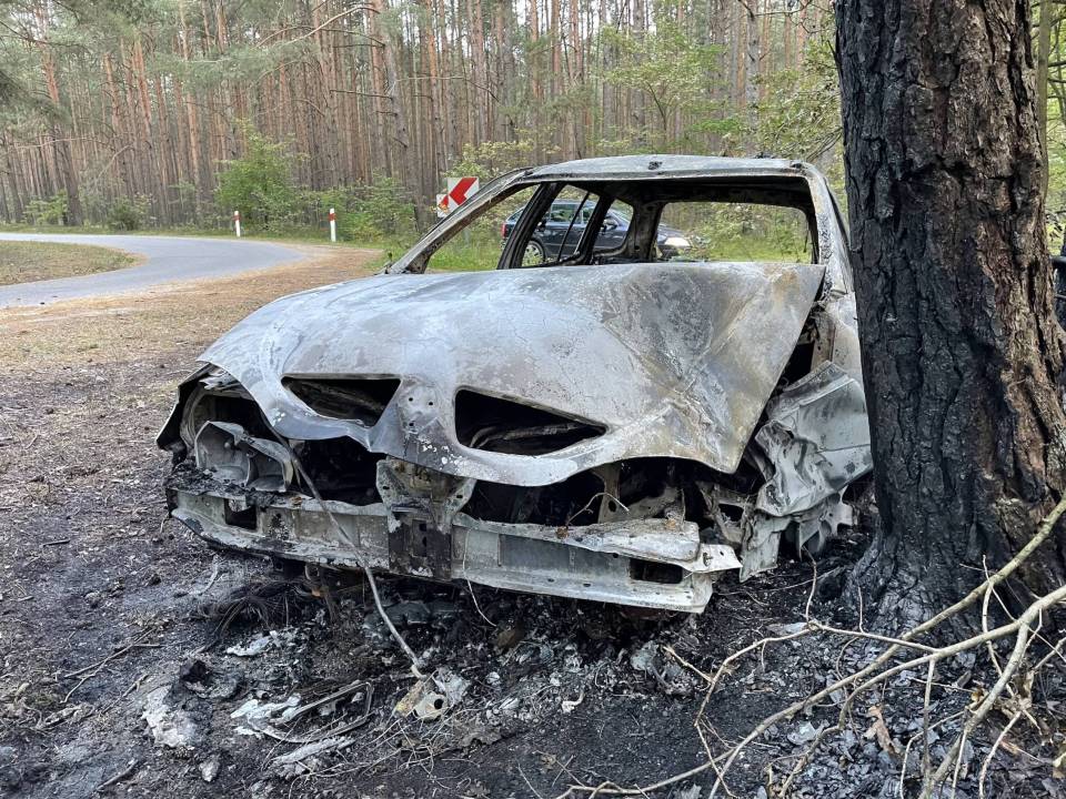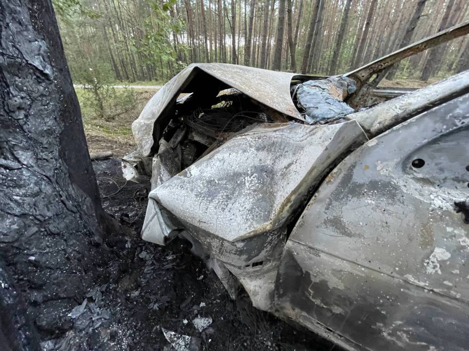Był wczesny niedzielny poranek, gdy na niewielkiej drodze powiatowej łączącej miejscowości: Osina i Magdalenów do akcji ruszyły dwie jednostki straży pożarnej. Tuż przy drodze, w lesie spłonął samochód osobowy. Skala zniszczeń jest ogromna, z auta poza blachą nie zostało praktycznie nic. Co się stało na tej drodze? To wyjaśnia policja i ze względu na toczące się postępowanie o sprawie na razie zbyt wiele mówić nie chce, wiadomo, że już zatrzymano mężczyznę.