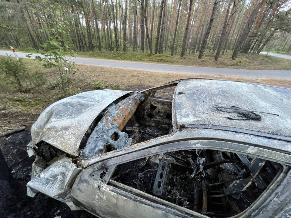 Do zdarzenia doszło w minioną niedzielę, 26 września. Tuż przed 05.00 rano strażacy z Bełchatowa i Kluk gasili ogromny pożar samochodu osobowego, który zapłonął w lesie tuż przy drodze łączącej Osinę w gminie Kluki z Magdalenowem z gminie Szczerców.