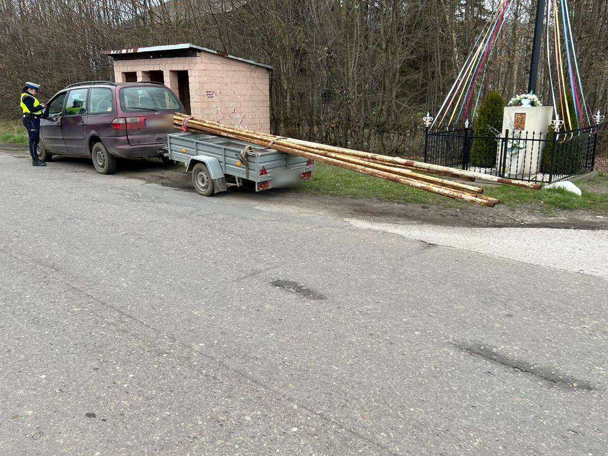 Do zatrzymania kierowcy z ponadgabarytowym jak na rozmiary przyczepki ładunkiem doszło we wtorek, 4 kwietnia około godziny 16:20. Mundurowi zauważyli nieprawidłowo zapakowanego forda na ulicy Długiej w Rydzynach. Zespół pojazdów nie tylko wyglądał na przeładowany, ale również był nieprawidłowo oznaczony, a ładunek niewłaściwie zabezpieczony.
