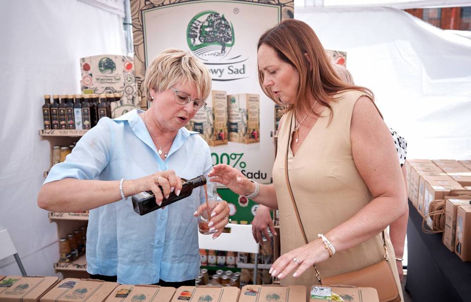 Wśród wystawców było wiele KGW oraz producentów regionalnej, tradycyjnej żywności. Ich stoiska kusiły pierogami z różnorodnym farszem, żurkiem na prawdziwym zakwasie, rzemieślniczymi serami czy domowymi przetworami. Smaki i aromaty przyciągały gości jarmarku a produkty oraz potrawy błyskawicznie znikały. - Wystawialiśmy się dzisiaj ze świeżonką, bigosem i pierogami z mięsem i kapustą, mamy też duży wybór ciast. Jest bardzo duże zainteresowanie, bardzo dużo chętnych, świeżonka już się skończyła – przyznał ok. godz. 16 Norbert Dudek z KGW Pod Lipami z Koła w pow. piotrkowskim. Gospodynie z KGW Chorki z pow. łęczyckiego do Łodzi przyjechały z prażokami, karkówką w sosie i żurkiem chorkowskim. Jak zdradziła Dorota Suchocz z koła, zupa jest robiona według bardzo starego przepisu przekazywanego z pokolenia na pokolenie. – Podstawą jest zakwas chorkowski z mąki żytniej z dodatkiem skórki chleba, kisi się go 7 dni – mówi.