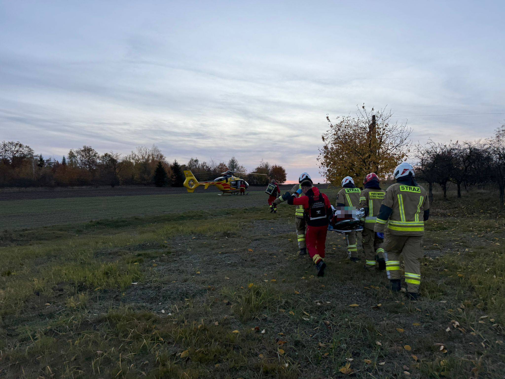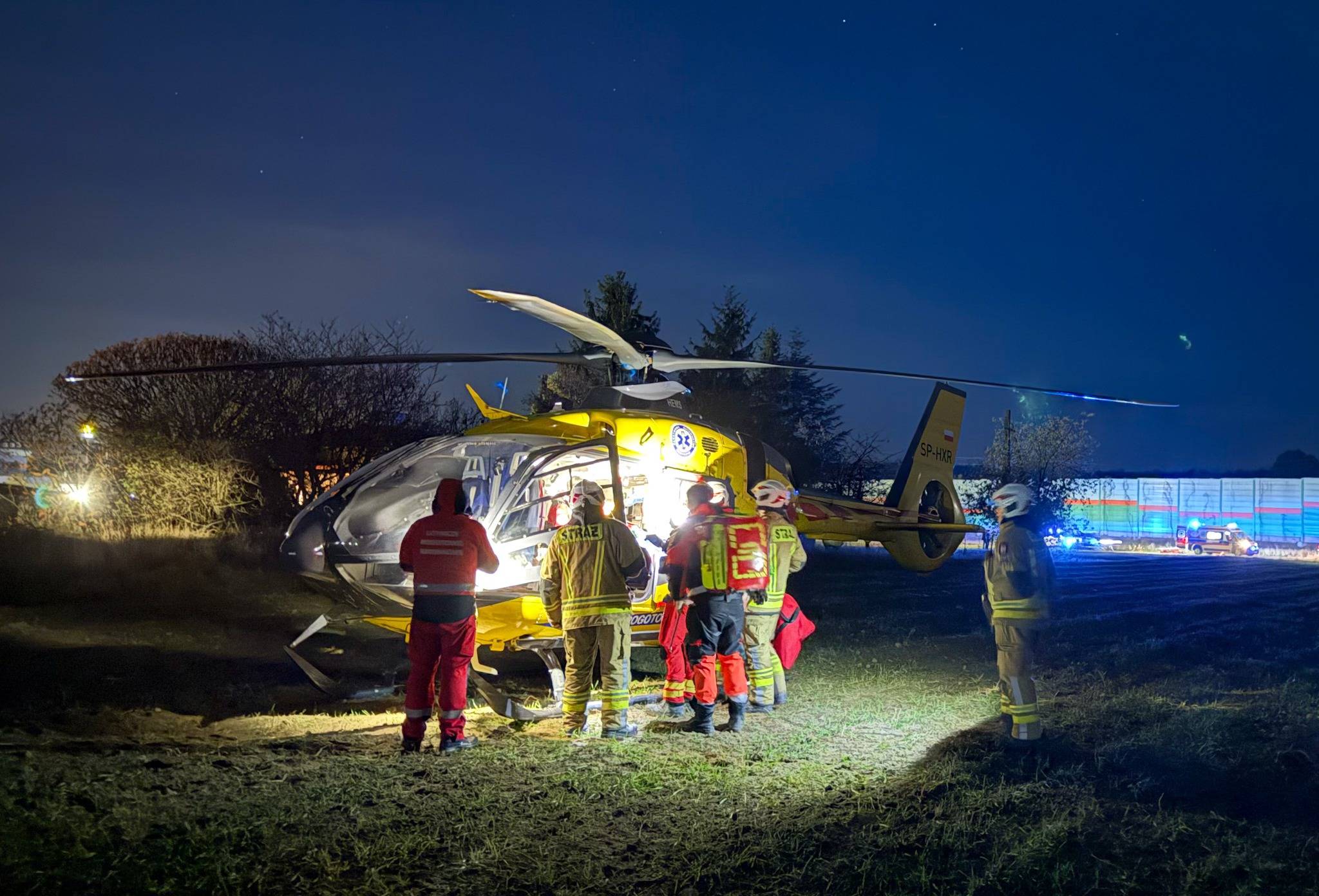 Na miejsce natychmiast skierowano pięć zastępów straży pożarnej, w tym cztery jednostki PSP z Rawy Mazowieckiej oraz jednostka OSP w Rawie Mazowieckiej, a także dwie karetki pogotowia i dwa śmigłowce Lotniczego Pogotowia Ratunkowego. Strażacy jako pierwsi dotarli na miejsce tragedii.