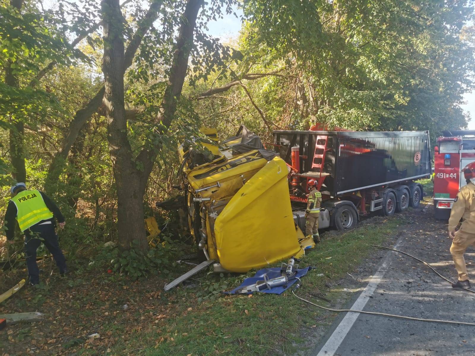 Do wypadku doszło w poniedziałkowy poranek. Było parę minut po 9.00 gdy do stanowiska kierowania PSP w Pajęcznie wpłynęło zawiadomienie o wypadku na DK 42. W tej chwili wstępnie wiemy, że kierowa ciężarówki uderzył w drzewo.