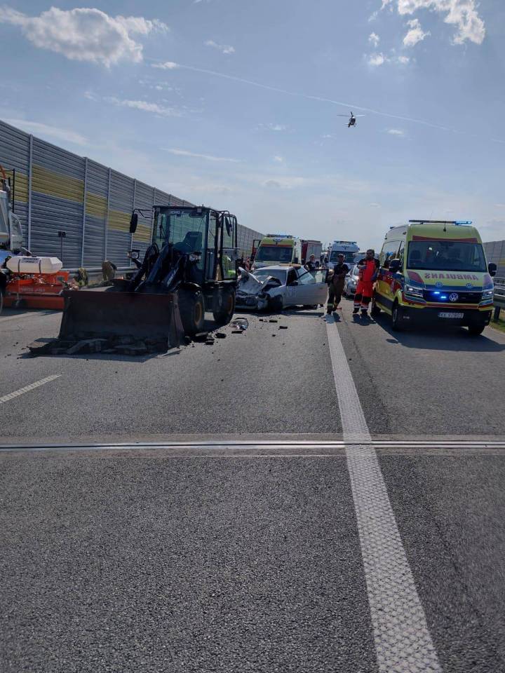 Do poważnego wypadku doszło na 171. kilometrze drogi ekspresowej S8 w kierunku Warszawy. Zderzyły się tam samochód osobowy marki honda oraz koparko-ładowarka wykonująca prace drogowe.