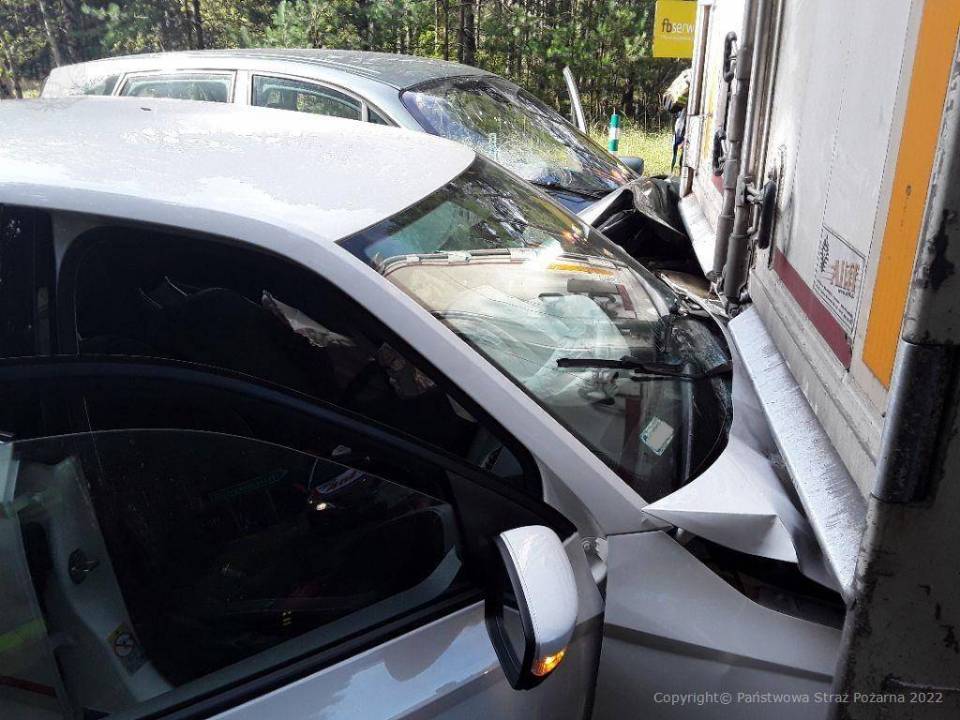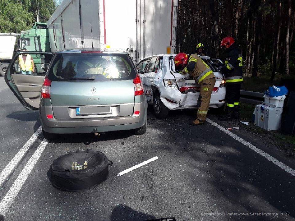 - Dwa samochody osobowe wjechały w tył ciężarówki. W wyniku zdarzenia jedna osobowa została poszkodowana, to 35-letni mężczyzna, który doznał stłuczenia ręki - wyjaśnia Marek Jeziorski z KP PSP Radomsko i dodaje: - W wyniku zderzenia pojazdów doszło do wycieków płynów eksploatacyjnych.