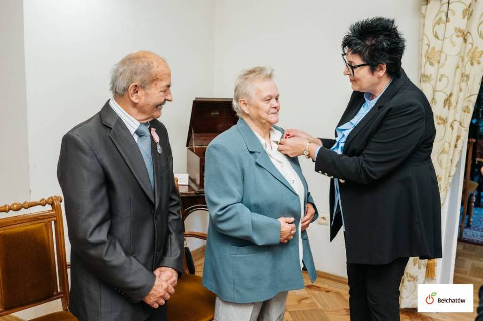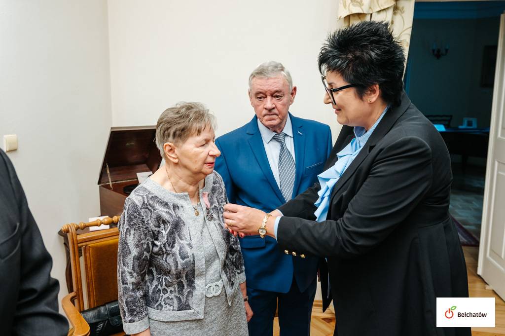 Okolicznościowe medale za długoletnie pożycie, nadane przez Prezydenta Rzeczypospolitej Polskiej, wręczyła jubilatom wiceprezydent Bełchatowa Agnieszka Ludwiczak-Maszewska.