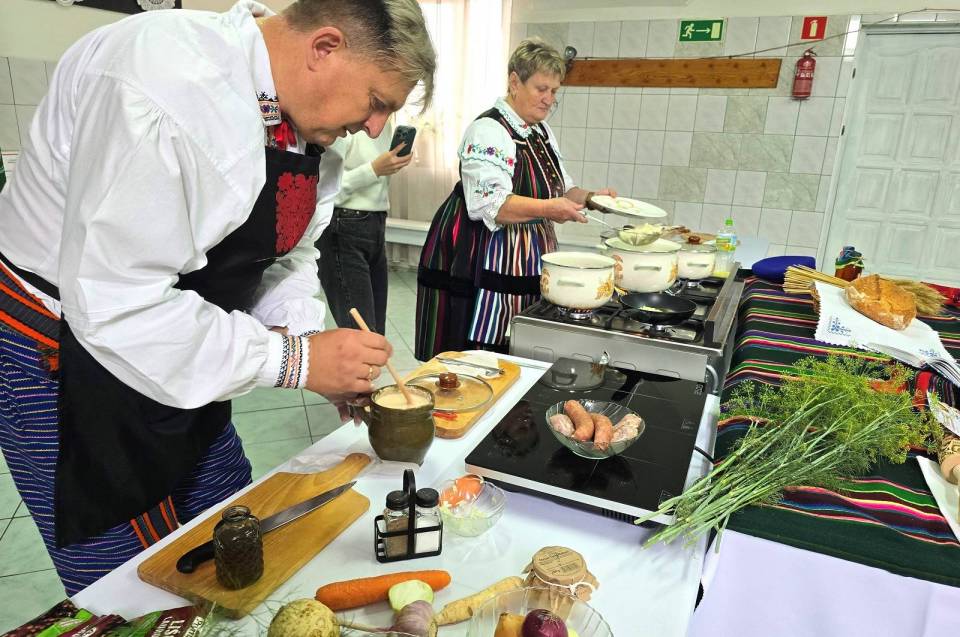 To w niej tworzy zaczyn najlepszego żuru w Polsce, co zajmuje około tygodnia i wiąże się z codziennym mieszaniem. Zupa jest gotowana na świeżych warzywach - marchwi, pietruszce, selerze, jest też czosnek i cebula i oczywiście dwa rodzaje wiejskiej kiełbasy. Jak przypomina pan Dariusz, kiedyś żur był dla mieszkańców regionu daniem niemal codziennym.