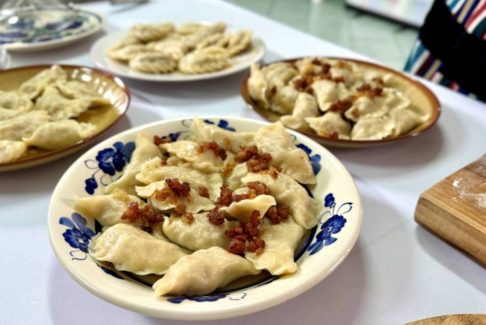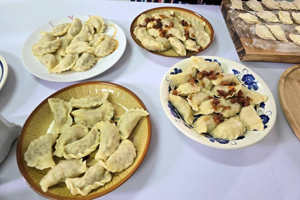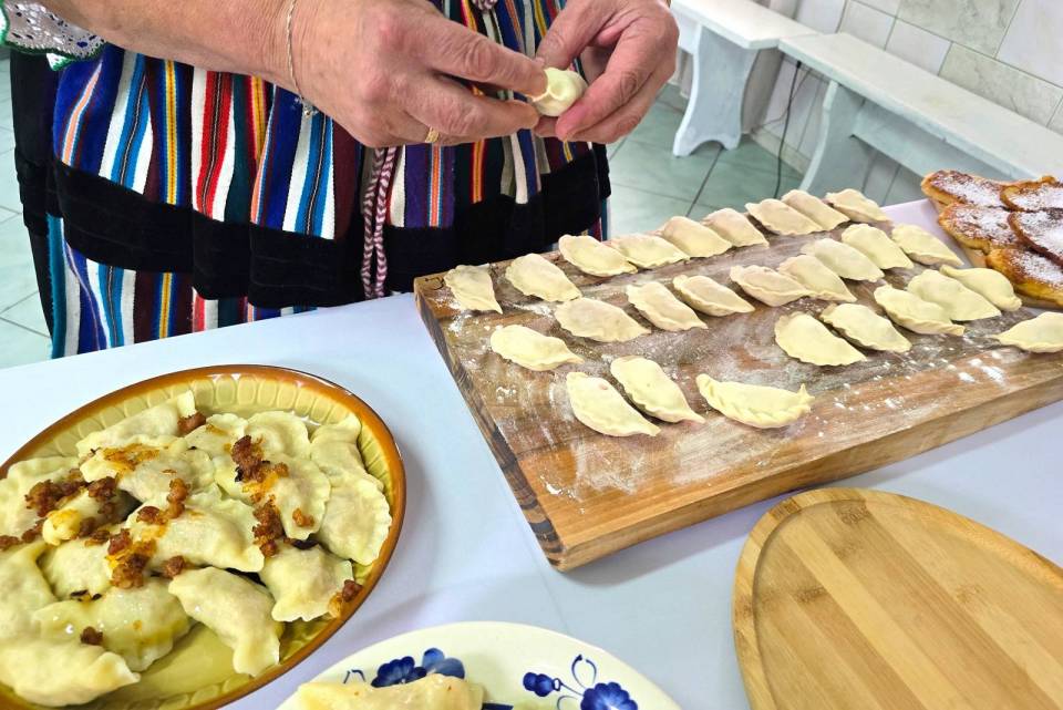Jeżeli chodzi o pierogi, które panie podają z okrasą, to do Warszawy zabrały ich tysiąc. Podobną liczbę szykują na niedzielne dożynki w Spale, ale na ich stoisku można też liczyć na smalec z domowym chlebem i ogórkami kiszonymi czy słodkie wypieki jak np. fale Dunaju.
